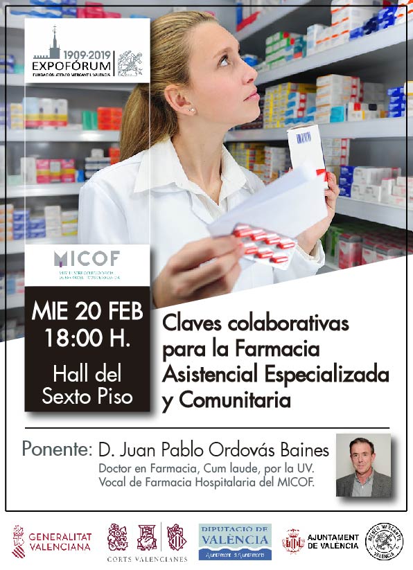 El primer acto de Expoforum Valencia 2019 del miércoles 20 de febrero se celebra en el Ateneo Mercantil de Valencia. Una conferencia que será a las 18 horas en el Hall del Sexto y llega bajo el título "Claves colaborativas para la Farmacia Asistencial Especializada y Comunitaria" y que tiene como ponente a D. Juan Pablo Ordovás Baines. En esta conferencia se expondrá la evolución de la profesión farmacéutica, vista en sus diferentes vertientes, y se comentará la labor que se realiza en paralelo desde la Farmacia Comunitaria y la Farmacia Hospitalaria, para una visión de futuro de la farmacia asistencial a un nivel global. Pondrá de manifiesto los retos que tiene por delante la Farmacia y las claves de la colaboración entre los diversos ámbitos que la forman.