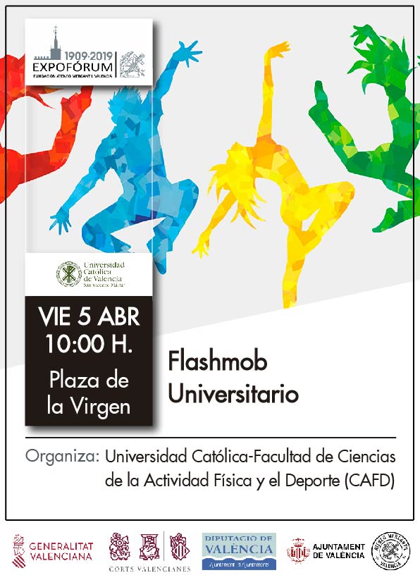 Nueva actividad de Expoforum Valencia en el exterior del Ateneo Mercantil. Esta vez se va a llevar a cabo un Flashmob Universitario en la Plaza de la Virgen este viernes 5 de abril a las 10.00 horas y por espacio de dos horas se va a bailar y a preparar este acción organizada en la que un gran grupo de personas se reunen en un lugar público, para realizar algo inusual como un baile y luego se dispersan. Este Fashmob durará hasta las 12 horas. Un evento que organiza la Universidad Católica de Valencia con la Facultad de Ciencias de la Actividad Física y el Deporte (CAFD). Si quieres pasártelo bien en la mañana del viernes, tu lugar es la Plaza de la Virgen; queda con tus amigos y participa en esta lúdica y divertida actividad. Lo pasarás en grande.