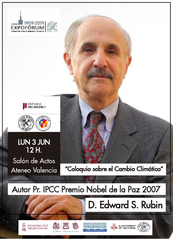 Inicio/Fundación A.M. C.V./Expoforum 2019/Edward Rubin, jurado Premios Rei Jaume I y Premio Nobel 2007: “Coloquio sobre el Cambio Climático”