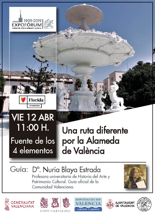 Una "Ruta Diferente por la Alameda de València" será explicada a través de la interpretación del patrimonio de uno de los paseos más espectaculares que tiene la ciudad de Valencia. Una actividad organizada por el Grado de Turismo de Florida Universitaria en colaboración con el el alumnado del mismo. Todo el que se apunte a vivir esta experiencia podrá comprobar la pasión por enseñar y compartir que posee Nuria Blaya, ella muestra mejor que nadie la cultura como algo accesible, sugerente y compatible con el ocio.