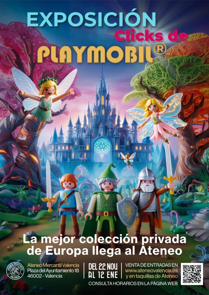 Llega a Valencia y al Ateneo Mercantil de Valencia la mayor colección privada de Europa de clicks de Playmóbil, que contará en esta ocasión con más de 25.000 piezas que invaden el Ateneo Mercantil (Plaza del Ayuntamiento, 18 de Valencia) un año más para celebrar las Navidades con los más pequeños, bueno y los no tan pequeños porque esta exposición la pueden disfrutar todos los integrantes de la familia.