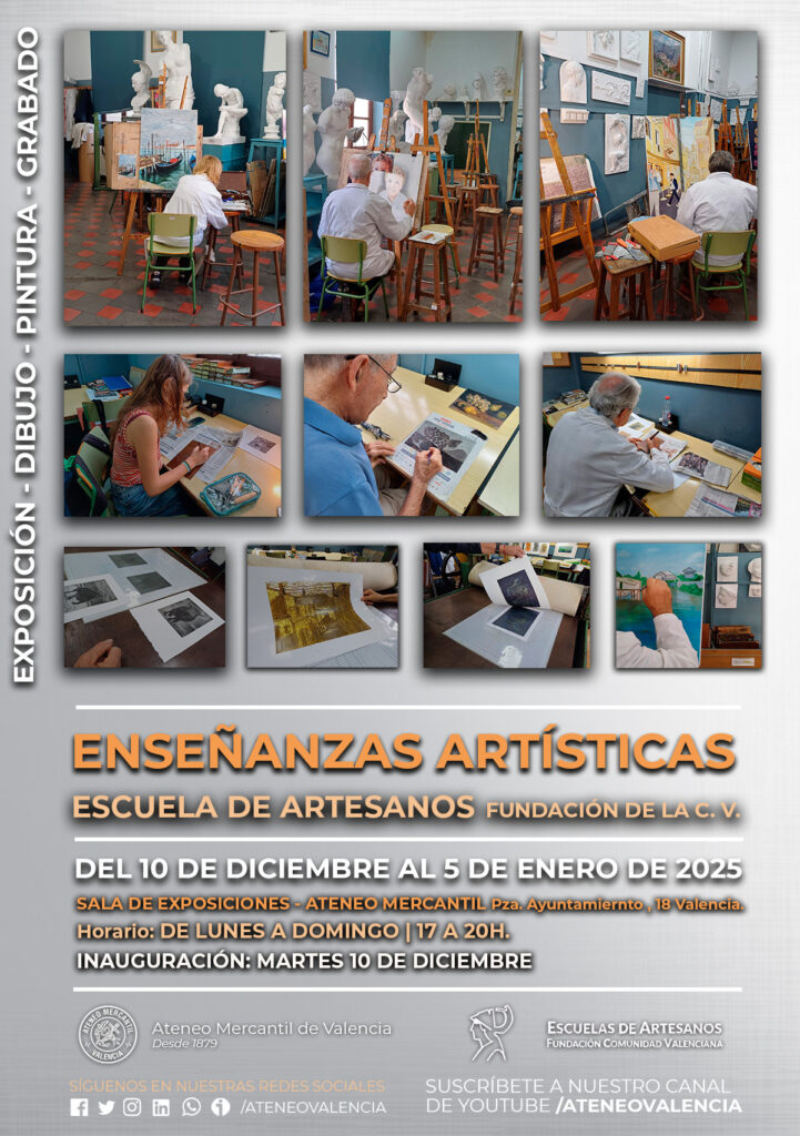 Desde el próximo 10 de diciembre y hasta el 5 de enero, los alumnos de "Enseñanzas Artísticas" de las Escuelas de Artesanos Fundación de la Comunitat Valenciana, tendrán la oportunidad de mostrar al público de la ciudad de Valencia, en una exposición colectiva, las obras que han estado realizando a lo largo de estos últimos cursos.