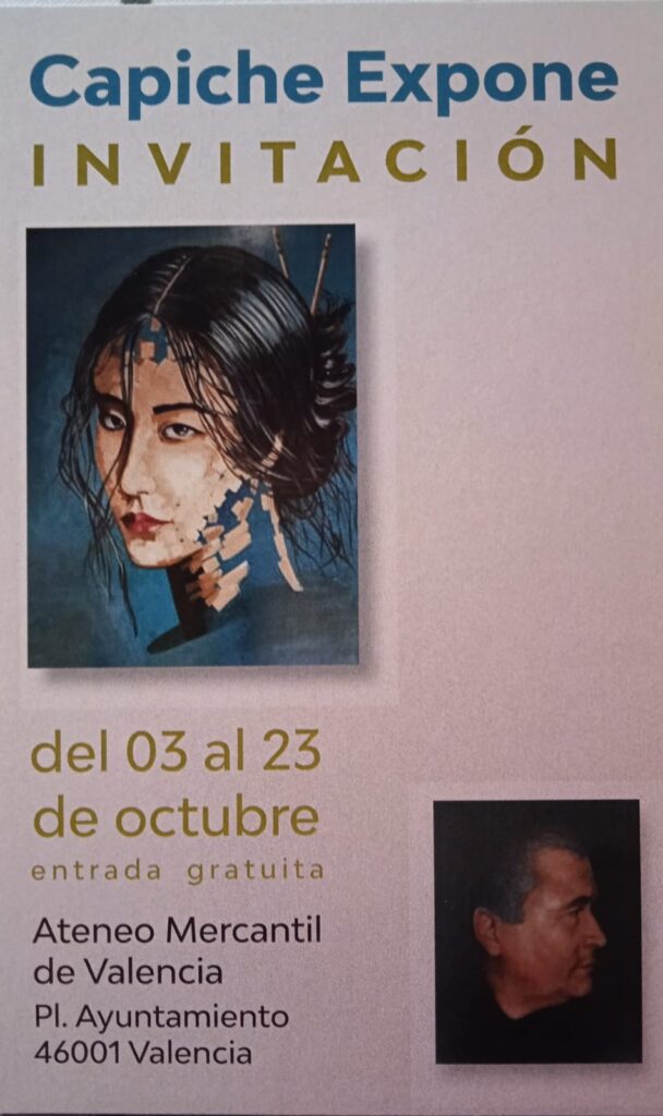El Ateneo Mercantil de Valencia acogerá del 3 al 23 de octubre la exposición de pintura gratuita "Capiche Expone" en la tercera planta de nuestro edificio. Una muestra que no dejará indiferente a nadie.