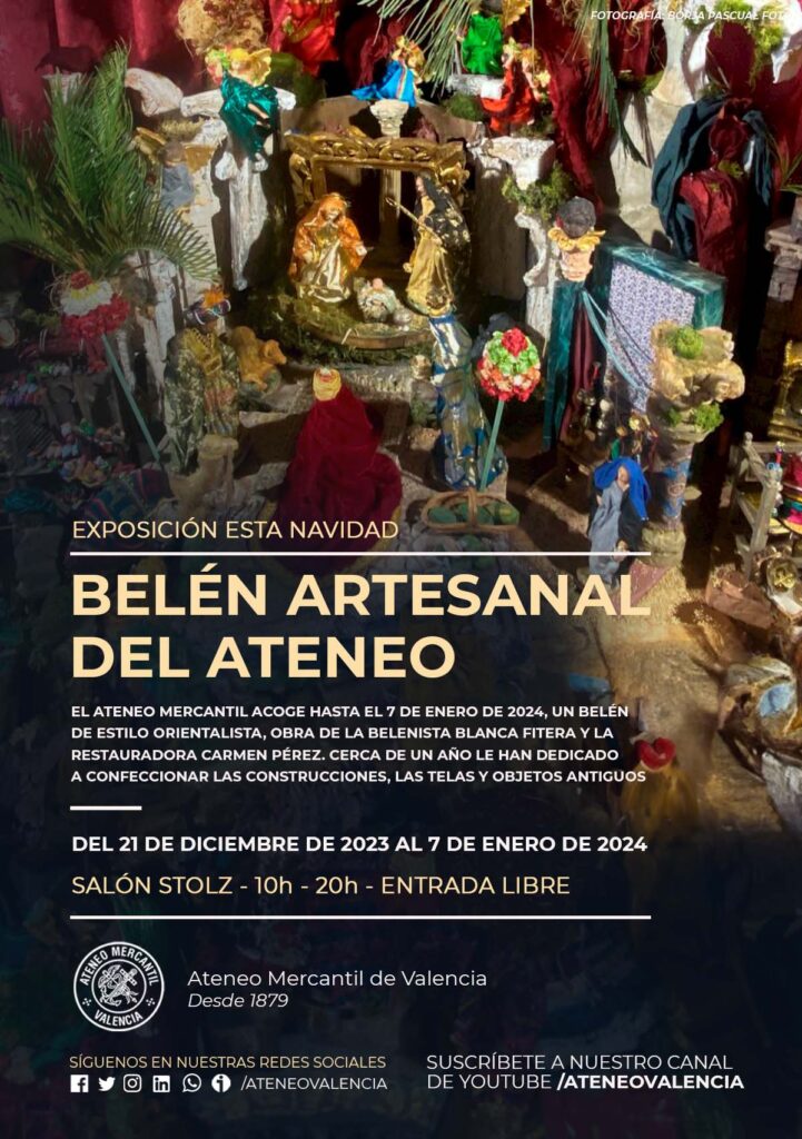 Estas Navidades el Ateneo Mercantil vuelve a exponer, en el Salón Stolz, un Belén de características muy particulares. El proyecto, realizado a lo largo de un año por la restauradora Carmen Pérez y la belenista Blanca Fitera, se ha materializado en un belén de estética orientalista donde coexisten las construcciones de Blanca Fitera y las figuras de Carmen Pérez en total armonía.