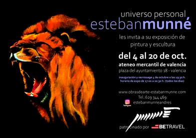 El Ateneo Mercantil de Valencia acoge en la Sala de Exposiciones, tercer piso del edificio, durante dos semanas (del 4 al 20 de octubre de 2024) la Exposición de pintura y escultura "Universo personal Esteban Munné". Al artista le apasiona darle vida y color a los espacios y en su última colección ha logrado volver a emocionar como siempre lo hace.