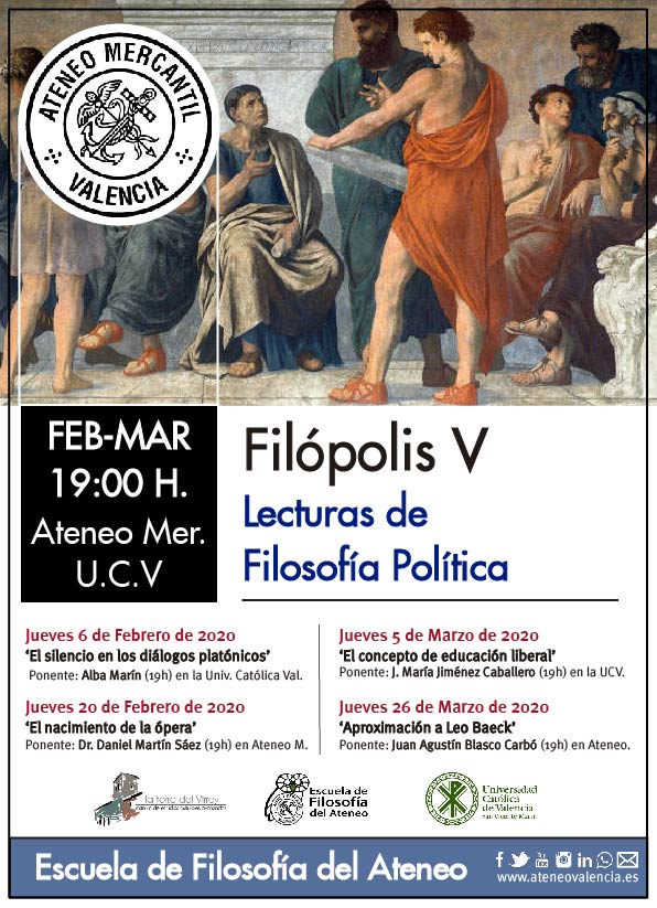 La tercera sesión de Filópolis V, lecturas de Filosofía Política, llega bajo el título 'El concepto de educación liberal' y se desarrollará en la Universidad Católica de Valencia el próximo jueves 5 de marzo a las 19 horas, gracias a las aportaciones de D. José María Jiménez Caballero.