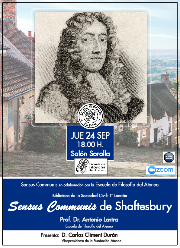 Nueva sesión del Foso Sensus Communis, pero esta vez contará con la colaboración con la Escuela de Filosofía del Ateneo para acercarnos un encuentro que llega bajo el título "Sensus Communis de Shaftesbury" y contará con la presencia del Prof. Dr. Antonio Lastra, de la Escuela de Filosofía del Ateneo.
