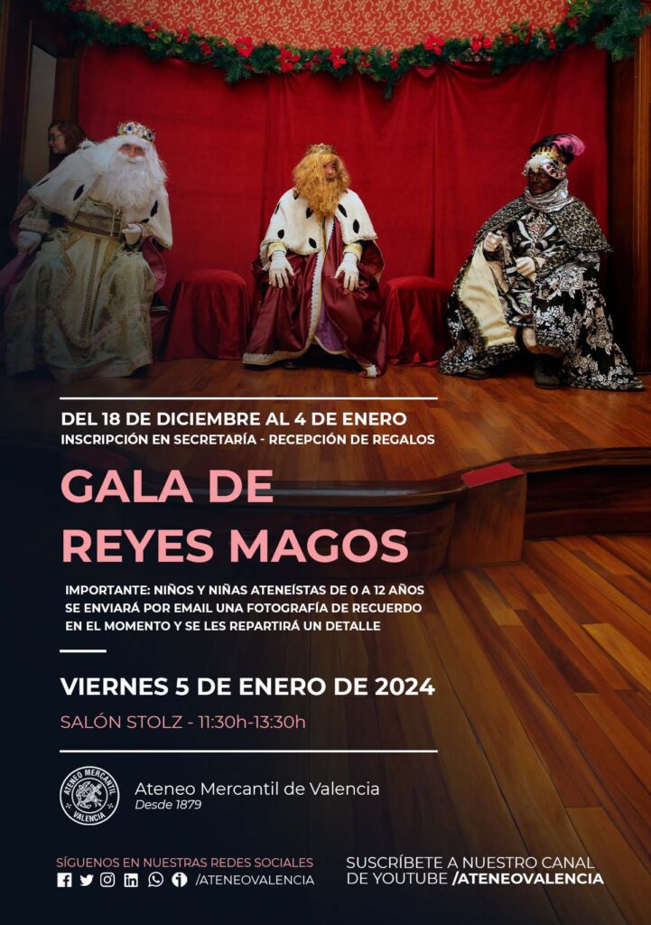 Los Reyes Melchor, Gaspar y Baltasar atenderán a los niños ateneístas antes de desfilar en la Cabalgata de Reyes de Valencia y en la intensa mágica tarde-noche para los niños y niñas de la ciudad.