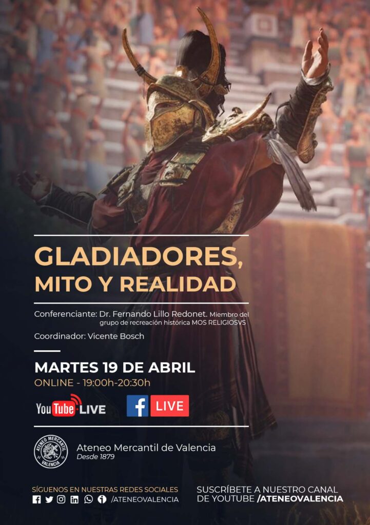 El escritor Fernando Lillo Redonet nos acercará el próximo martes 19 de abril a las 19 horas en Online la figura de los gladiadores. De su mano conoceremos a los gladiadores antes y durante el espectáculo, así como el impacto de estos combates en el público. Antes del espectáculo nos remontaremos a los orígenes funerarios y rituales de este tipo de luchas, entraremos en una escuela de gladiadores para saber cómo eran reclutados, cómo entrenaban y de qué se alimentaban, cuáles eran las relaciones dentro de la familia gladiatoria y qué tipos de gladiadores había con sus principales características. También sabremos quién organizaba los juegos y cuánto podían costar, y muchas otras cosas.