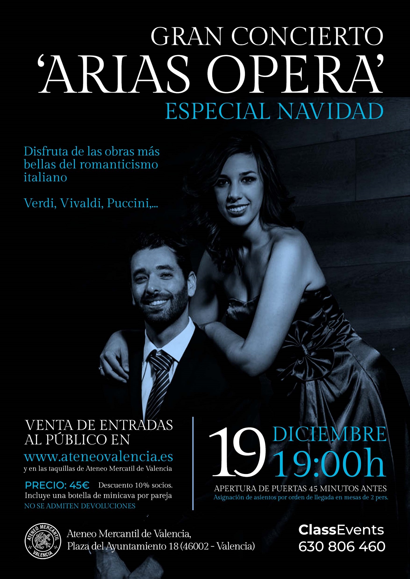 - PVP 45 € (Iva incluido). Entrada al concierto de navidad ‘Arias Ópera' para 1 persona. (Descuento 10% a socios). No se admiten devoluciones.