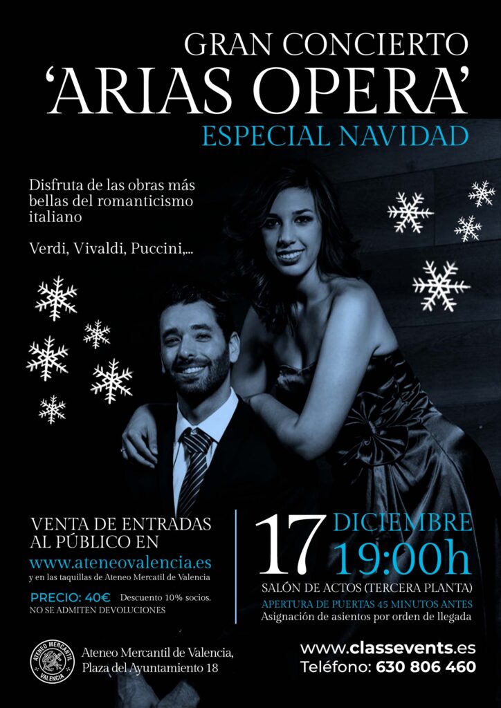 - PVP 40 € (Iva incluido). Entrada al concierto de navidad ‘Arias Ópera' para 1 persona. (Descuento 10% a socios). No se admiten devoluciones.