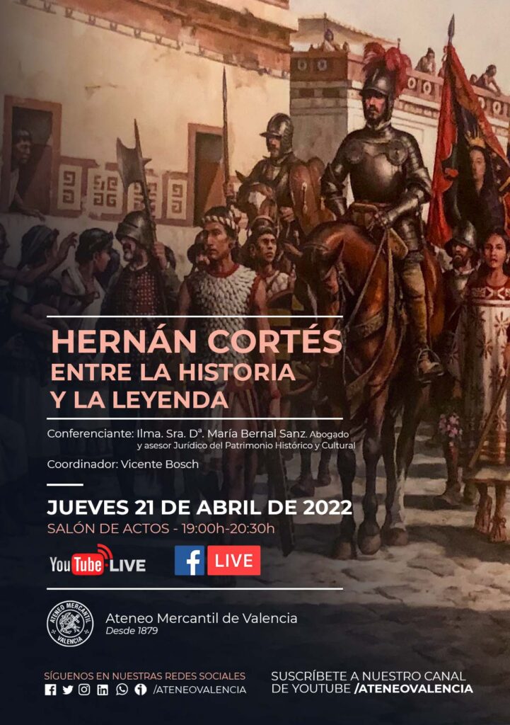 El próximo jueves 21 de abril, a las 19 horas en el Salón de Actos del Ateneo Mercantil de Valencia se llevará acabo la conferencia "Hernán Cortés. Entre la historia y la leyenda" y contará como ponente a la Ilma. Sra. Dª. María Bernal Sanz, abogado y asesor Jurídico del Patrimonio Histórico y Cultural.