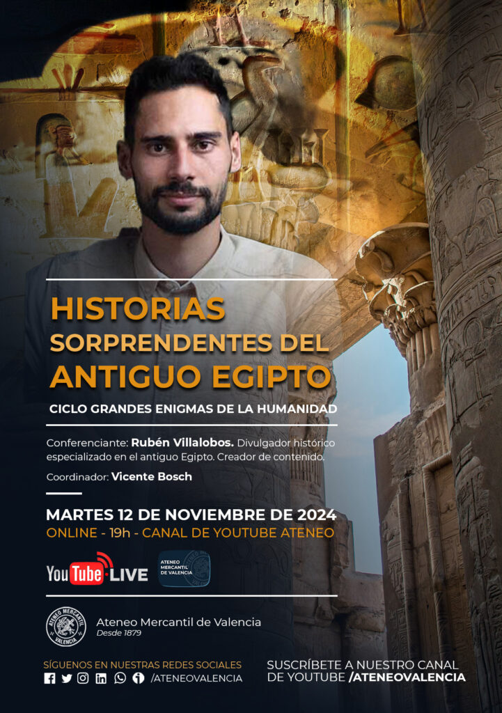 Conferenciante: Rubén Villalobos. Divulgador histórico especializado en el antiguo Egipto. Creador de contenido.