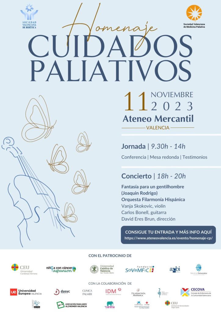 Las Sociedades Valencianas de Medicina Paliativa y de Bioética, junto con el apoyo artístico de la orquesta Filarmonía Hispánica, quieren darle un sentido Homenaje a los Cuidados Paliativos y a todos aquellos profesionales sanitarios y cuidadores que hacen posible que los enfermos puedan llevar una vida digna hasta el final de sus días.