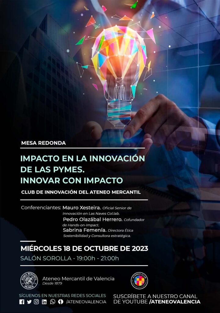 El Club de Innovación del Ateneo organiza un nuevo encuentro el próximo miércoles 18 de octubre a las 19 horas en el Salón Sorolla del Ateneo en el que se hablará sobre innovación e impacto. Bajo el título "Impacto en la innovación de las Pymes. Innovar con Impacto" se realizará una mesa redonda con los siguientes tres ponentes:
