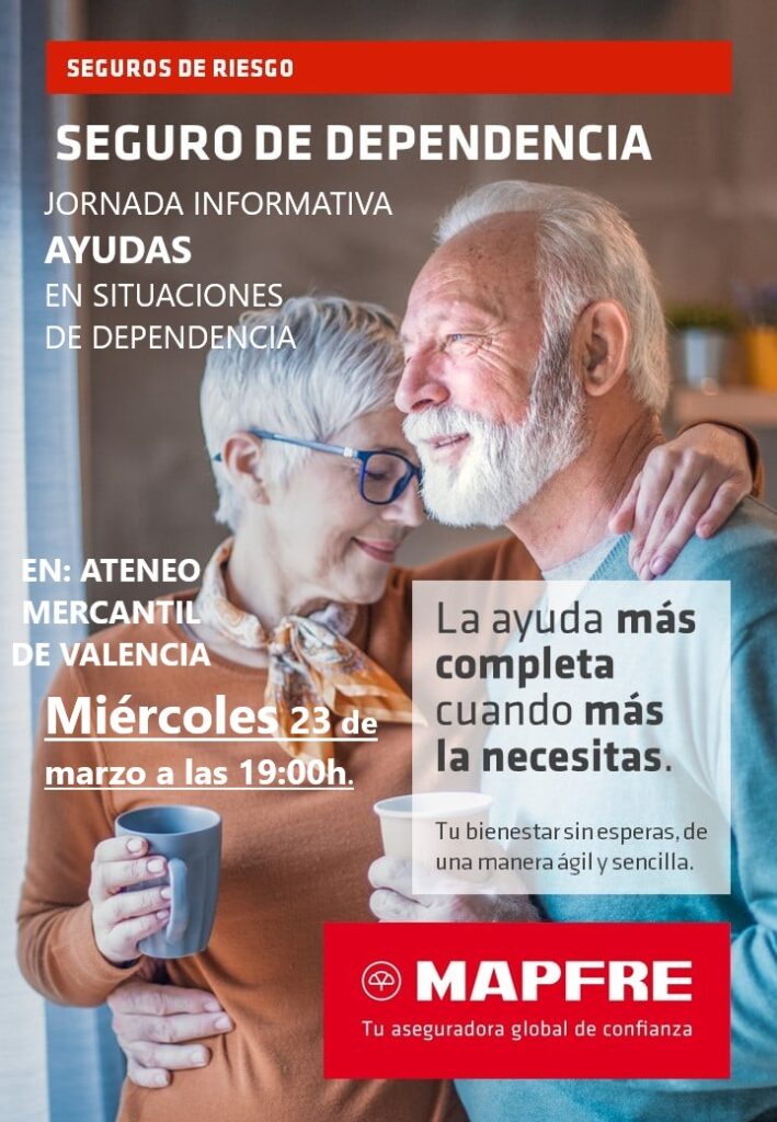 El próximo miércoles 23 de marzo, a las 19.00 horas, se celebra en el Salón Sorolla del Ateneo Mercantil de Valencia una jornada informativa sobre "Ayudas en situaciones de dependencia". Un acto organizado por Mapfre.