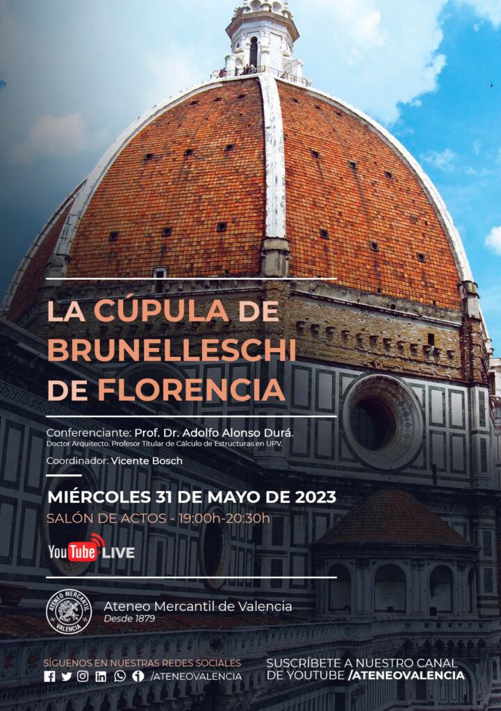 El Prof. Dr. Adolfo Alonso Durá tratará de explicarnos cómo una cúpula de decenas de miles de toneladas, de casi 50 metros de ancho, que empezó a edificarla a 55 metros de altura, sobre los muros ya existentes puede sostenerse sin elementos de sustentación... Nadie lo sabía, excepto Brunelleschi.