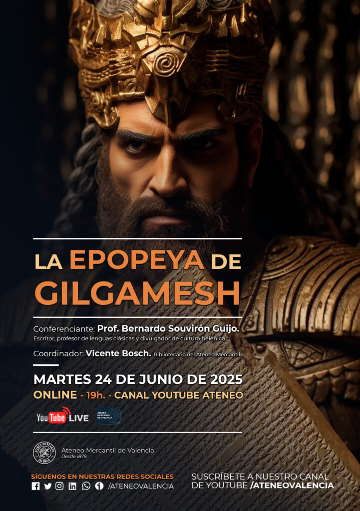 El Ateneo Mercantil de Valencia tiene el placer de invitarle a una nueva conferencia online bajo el título “La Epopeya de Gilgamesh de Uruk. Un relato para el siglo XXI”, que tendrá lugar el próximo martes 24 de junio de 2025 a las 19:00 horas, retransmitida en directo y de forma gratuita a través del canal de YouTube del Ateneo.