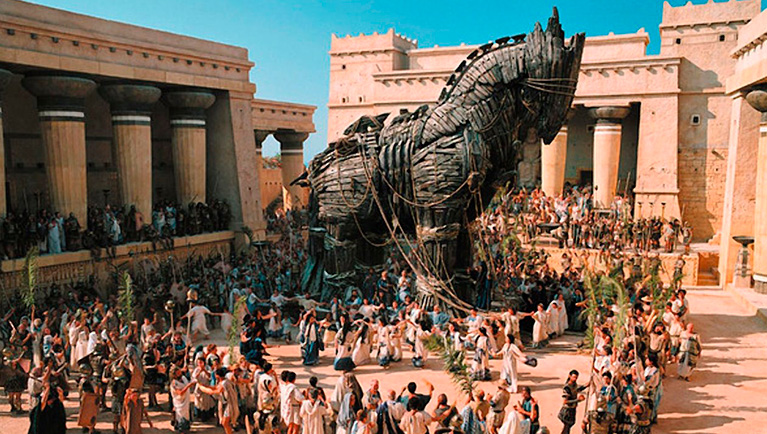 Según la epopeya griega La Ilíada, el príncipe Paris de Troya secuestró a su enamorada Helena de Grecia, la mujer más bella del mundo, y Melenao de Esparta, su marido, convocó a los griegos, que emprendieron la guerra contra los troyanos. Esta guerra fue el encuentro de muchos de los grandes héroes de la antigüedad, como Aquiles, Héctor o Áyax.