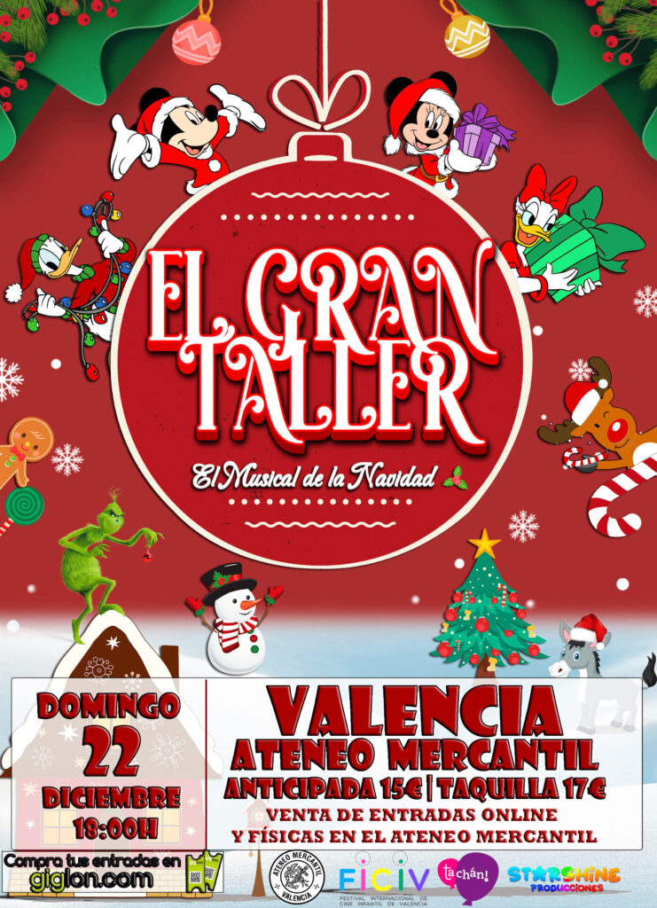 El domingo 22 de diciembre a las 18 horas, el Ateneo Mercantil de Valencia se llenará de magia y emoción con "El Gran Taller: El Musical de la Navidad", un espectáculo único que hará brillar los ojos de grandes y pequeños.