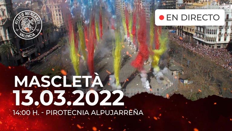 Décimo tercer día de mascletaes en Valencia. El Canal de Youtube del Ateneo retransmite en directo el disparo que ofrece la pirotecnia Alpujarreña. Desde las 13.55 horas, podrán seguir en directo este acontecimiento que regresa a la Plaza del Ayuntamiento tras un año y medio sin poder sentir el ruido y el olor a pólvora por las restricciones de la pandemia de la Covid-19.
