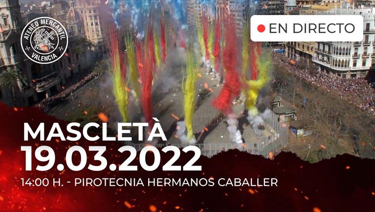 Décimo noveno día de mascletaes en Valencia. El Canal de Youtube del Ateneo retransmite en directo el disparo que ofrece la pirotecnia Hermanos Caballer. Desde las 13.55 horas, podrán seguir en directo este acontecimiento que regresa a la Plaza del Ayuntamiento tras un año y medio sin poder sentir el ruido y el olor a pólvora por las restricciones de la pandemia de la Covid-19.