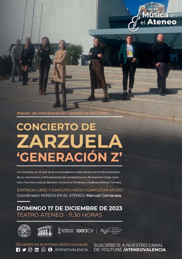 La Fundación del Ateneo Mercantil de la CV junto al Conservatorio Superior de Música "Joaquín Rodrigo" de Valencia organizan este concierto gratuito el próximo domingo 17 de diciembre a las 11.30 horas en el que tendrá una especial relevancia la Zarzuela gracias a los alumnos del Máster de Interpretación Operística del CSMV.