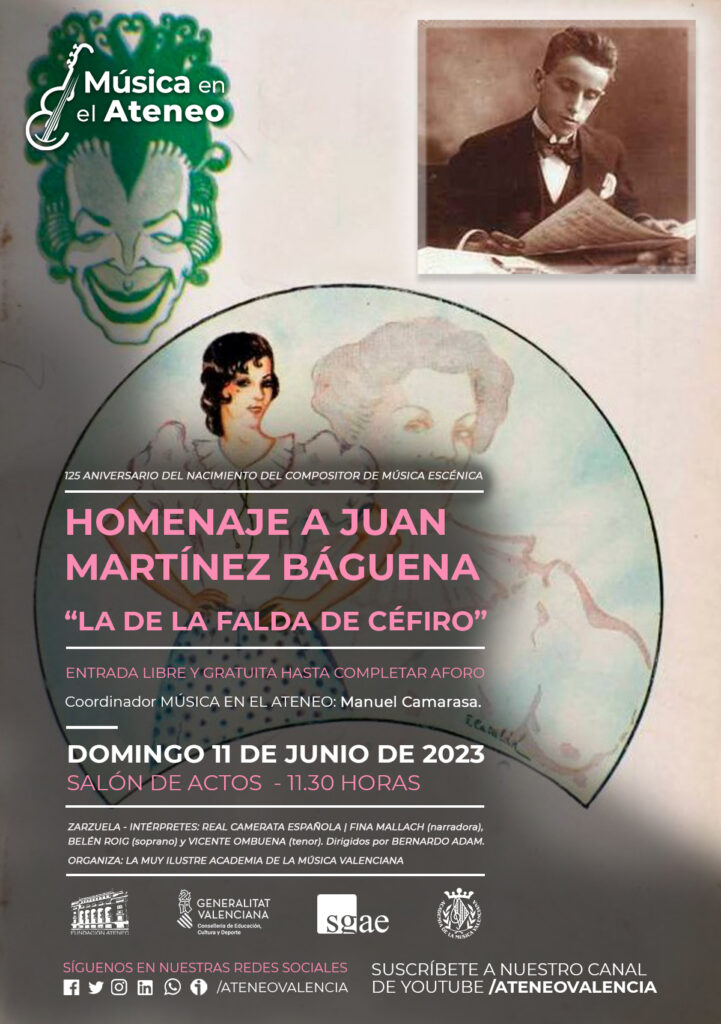 En el año 2022 se celebró el 125 aniversario del nacimiento del insigne compositor de música escénica Juan Martínez Báguena (Valencia, 24 de mayo de 1897 - 19 de mayo de 1986). En colaboración con la M. I. Academia de la Música Valenciana, la Real Camerata Española va a realizar una gira de actuaciones con la versión en concierto de su zarzuela "La de la falda de Céfiro", en una versión para octeto de viento, narradora, soprano y tenor.