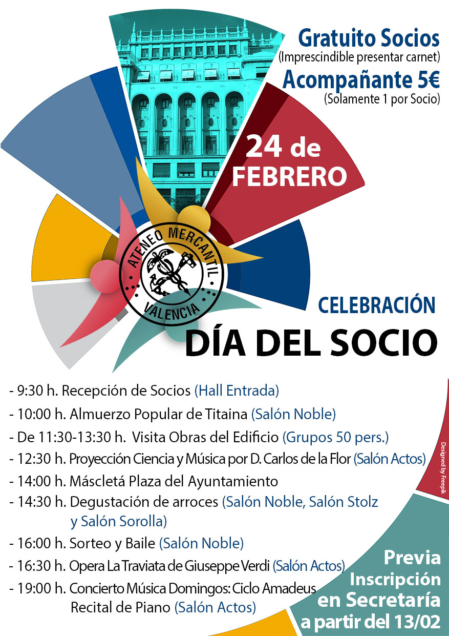 Por segunda vez el Ateneo Mercantil de Valencia quiere premiar la fidelidad del socio ateneísta y vuelve a crear una nueva jornada de ocio, gastronomía y diversión este mes de febrero. Tras el éxito del primer ‘Día del Socio’ del pasado mes de junio, se vuelve a celebrar esta jornada en la que habrá almuerzo y comida gratis, en la que habrá baile, sorteos, visitas a las obras del edificio, por supuesto habrá visualización de vídeos, entre los que se encuentra la Ópera La Traviata de Giuseppe Verdi. Una jornada para que el socio la disfrute como si estuviera en su casa.