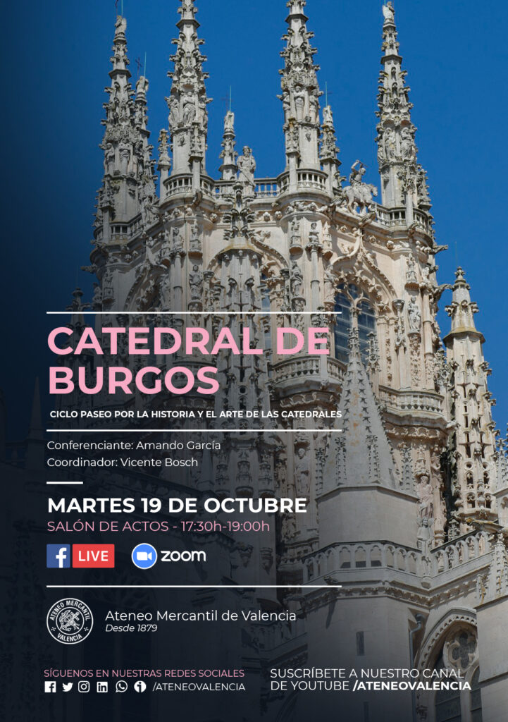 Un nuevo ciclo llega al Ateneo Mercantil de conferencia de la mano del profesor e historiador de arte, D. Amando García, el Ciclo Paseos por la Historia y el Arte de las Catedrales de España. En esta ocasión se desarrollará "La Catedral de Burgos", que en este 2021 ha cumplido 800 años y está intacta.