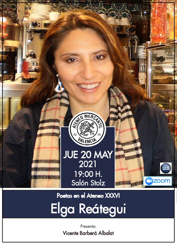 El Ciclo de Poetas en el Ateneo regresa el próximo jueves 20 de mayo a las 19 horas en el Salón Stolz del Ateneo Mercantil con una nueva reunión, la trigésimo sexta, que traerá hasta nuestra institución a la escritora, poeta y periodista, Elga Reátegui Zumaeta. Un acto que está coordinado y presentado por el poeta Vicente Barbera.