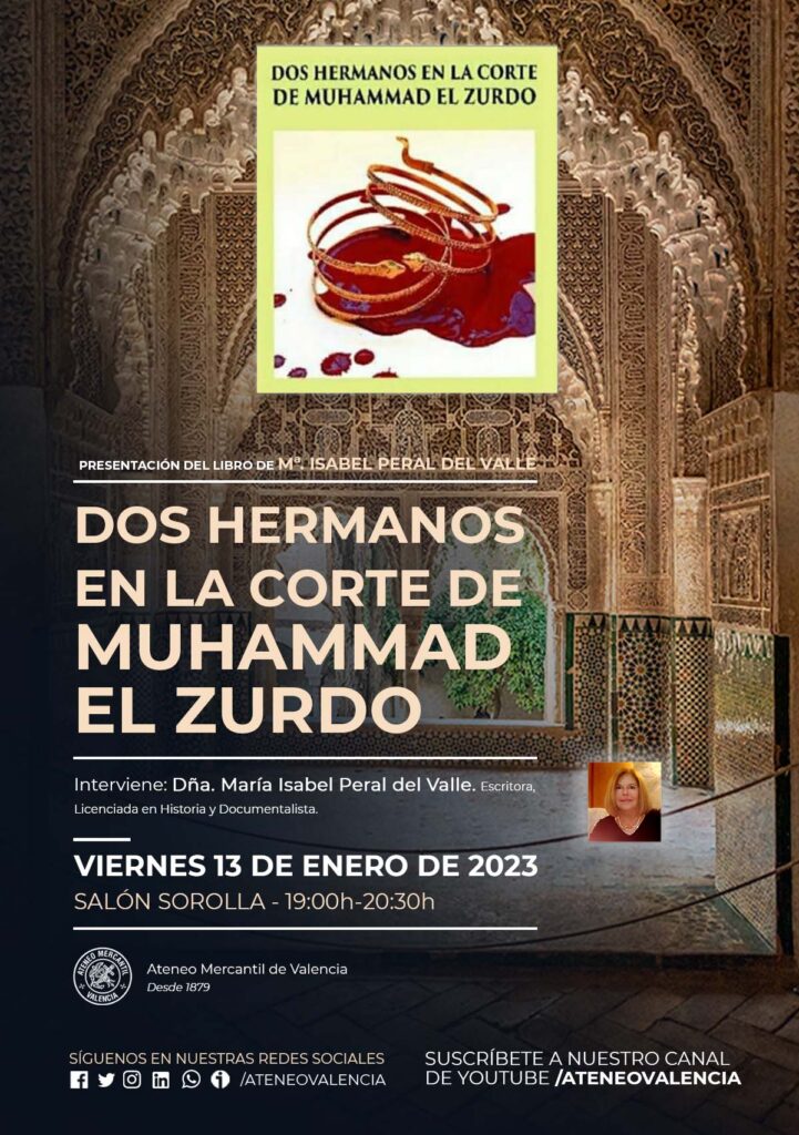 El próximo viernes 13 de enero de 2023 a las 19 horas en el Salón Sorolla llega la presentación del libro "Dos hermanos en la corte de Muhammad el Zurdo" de María Isabel Peral del Valle, escritora y licenciada en Historia y Documentalista. En la presentación contará con la presencia de Mauro Guillén y Susi Bonilla, miembros de Bibliocafé.