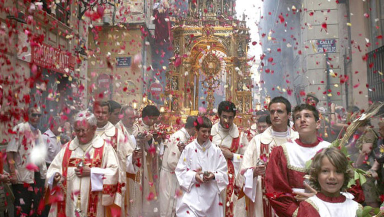 El próximo domingo 18 de junio de 2017 tendrá lugar en Valencia la Solemne Procesión del Corpus y los socios del Ateneo Mercantil pueden estar en ella si lo desean. La convocatoria es a las 18.30 horas en la Puerta Principal del edificio, con el Dress Code: señores de traje negro y las señoras con vestido negro, teja y mantilla negra.