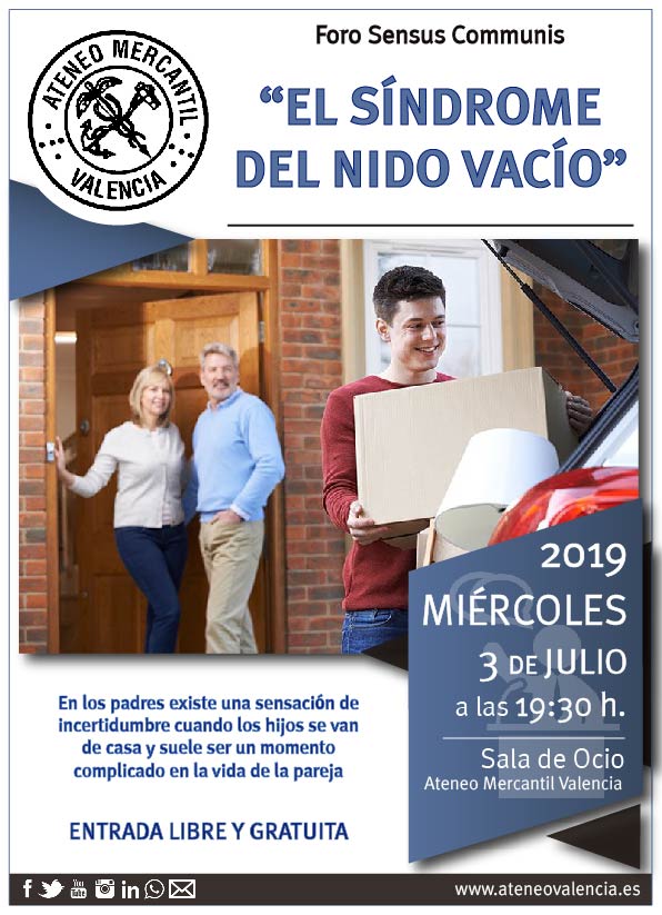 El próximo miércoles 3 de julio a las 19.30 horas en la Sala de Ocio se celebrará el último Sensus Communis de este curso con la participación del habitual contertulio Francisco Bernal, quien ha sido el que ha propuesto el debate sobre "El síndrome del nido vacío".