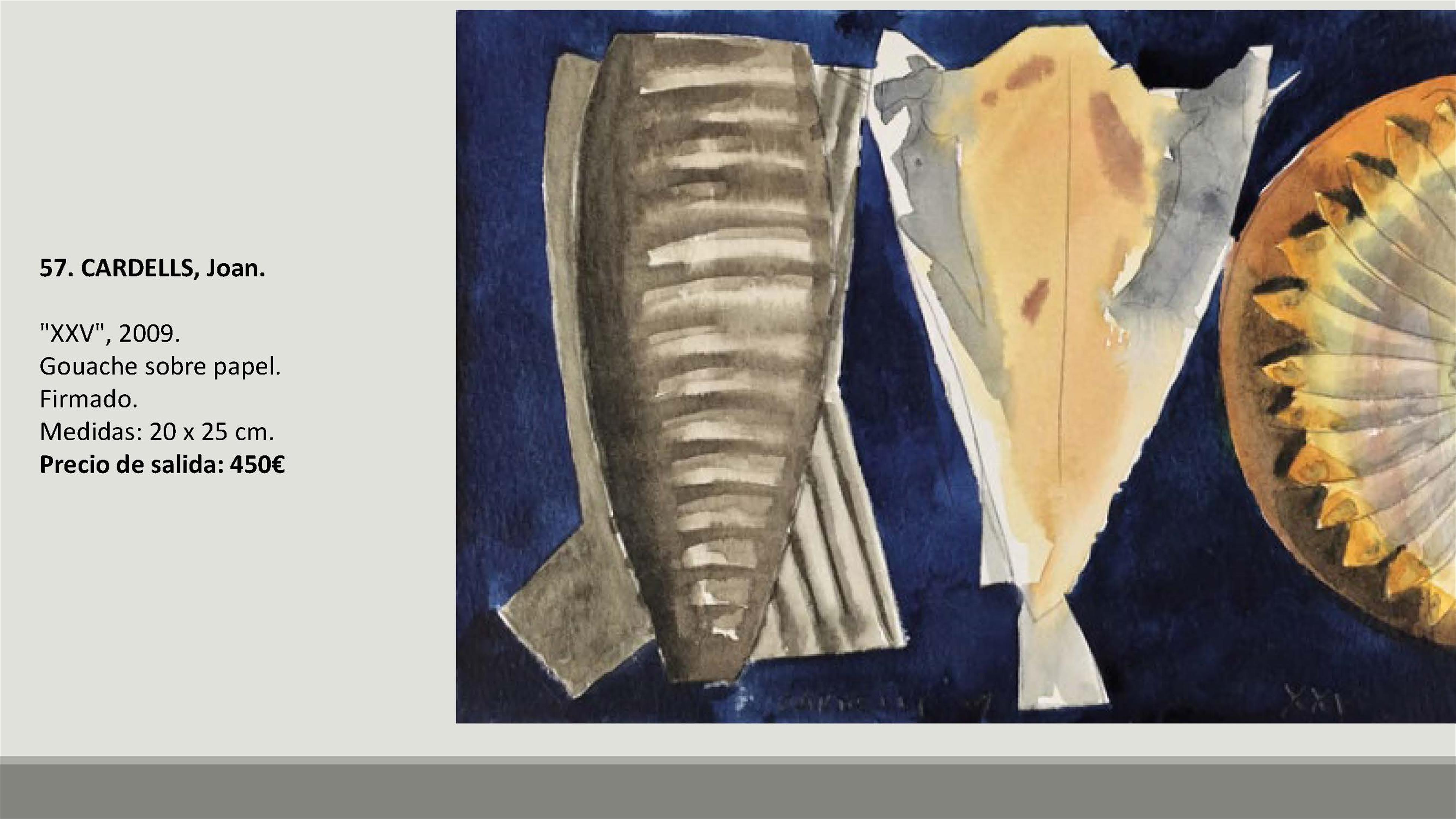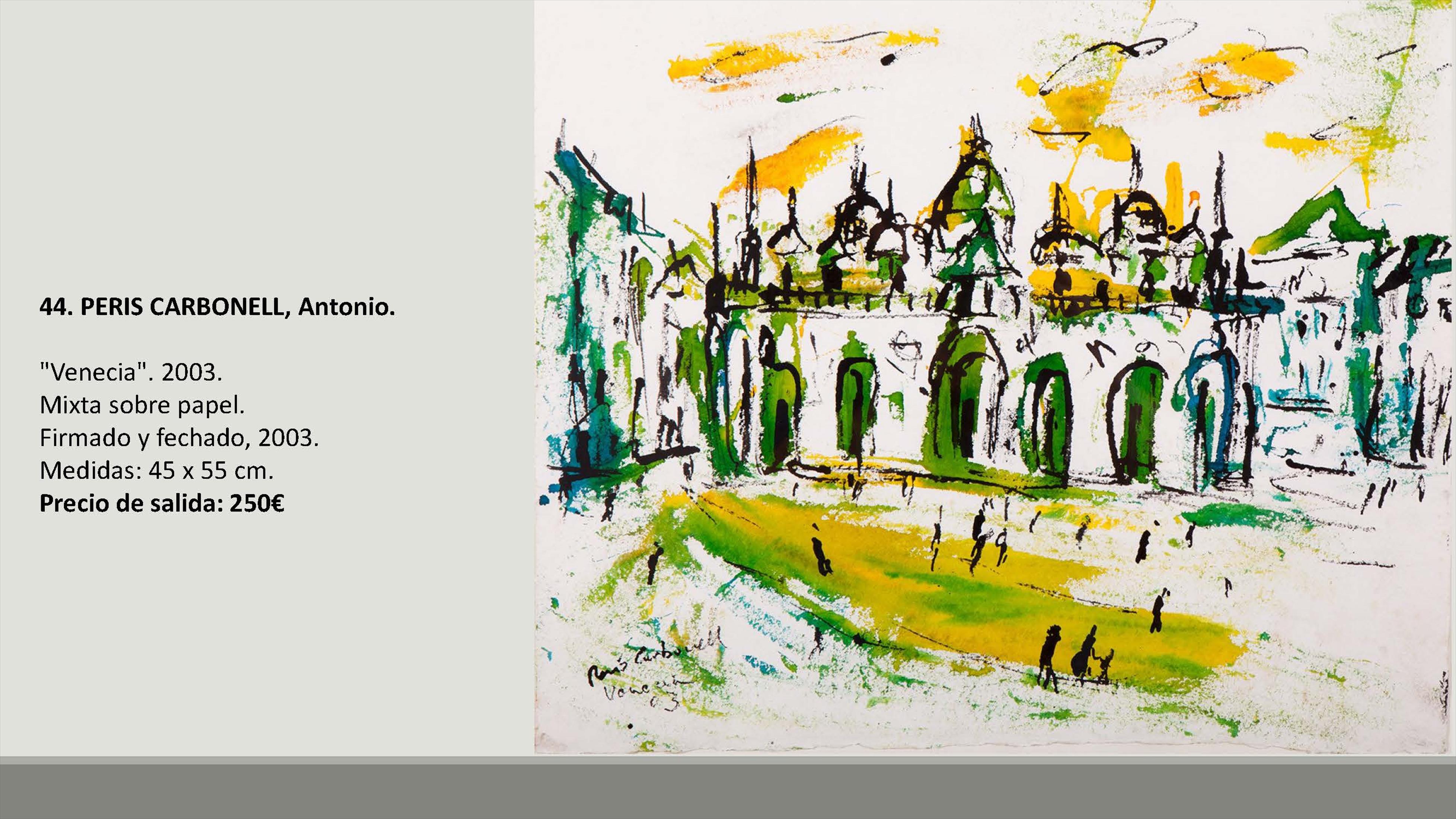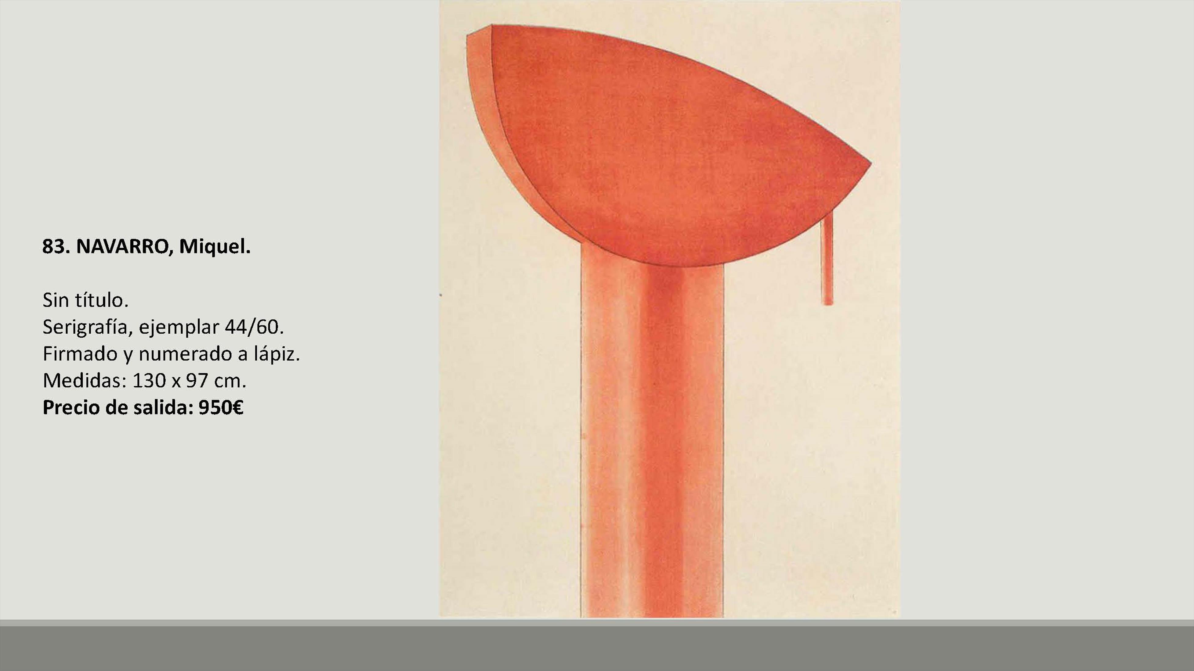 En total se subastarán 109 lotes con precios de salida de entre 90 y 1.800 euros. Y entre las obras hay artistas como Francisco Sebastián, Manolo Valdés, José María Yturralde, Willy Ramos, Vicente Peris, Juan Bautista Porcar Ripollés, Jose Luis Checa, Miquel Navarro, Felipe Santamans, Pedro de Valencia, Horacio Silva, Francisco Lozano, Joaquín Michavila, Genaro Lahuerta, Juan Antonio Toledo, Eusebio Sempere, Cirilo Martínez Novillo, Joan Cardells, Roberto Domingo, Jacinta Gil Roncalés o Carmen Calvo, entre otros artistas.