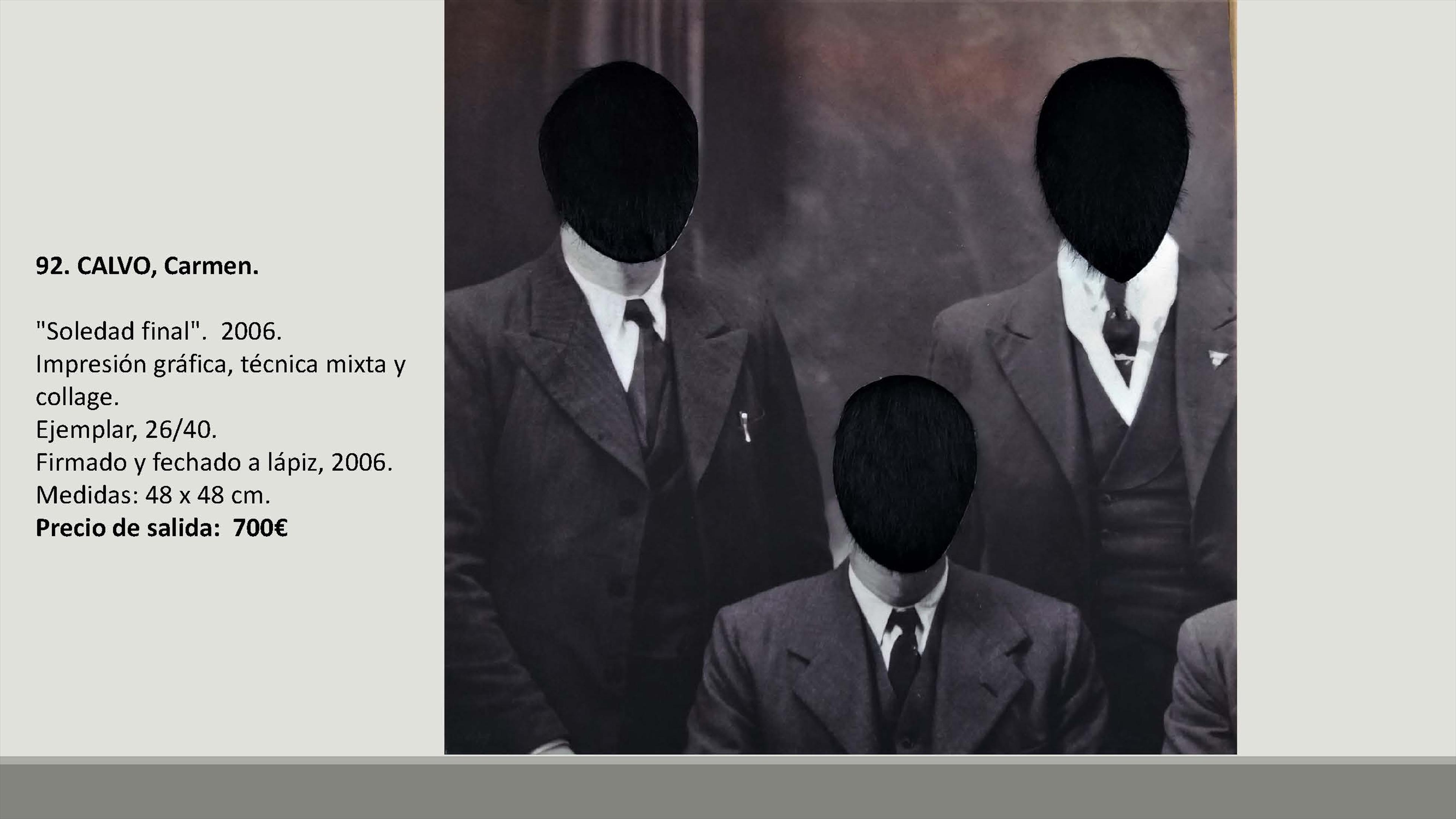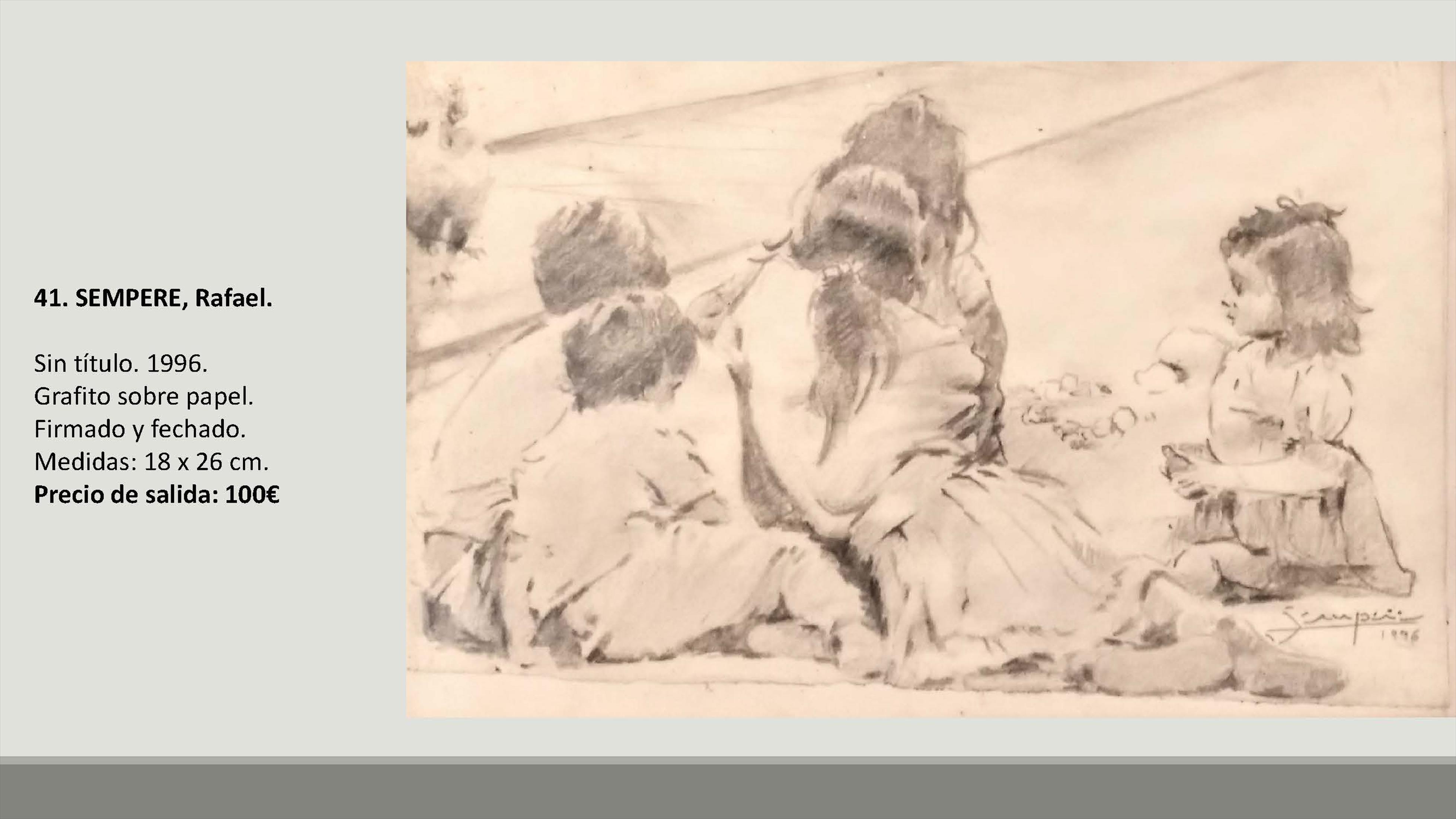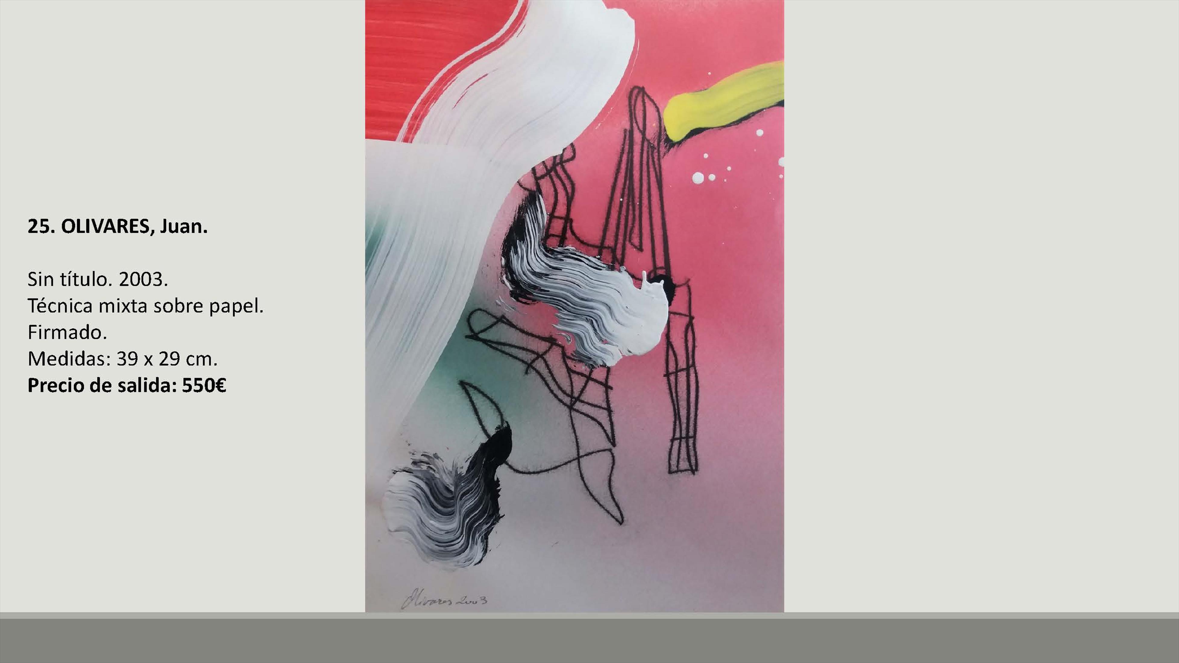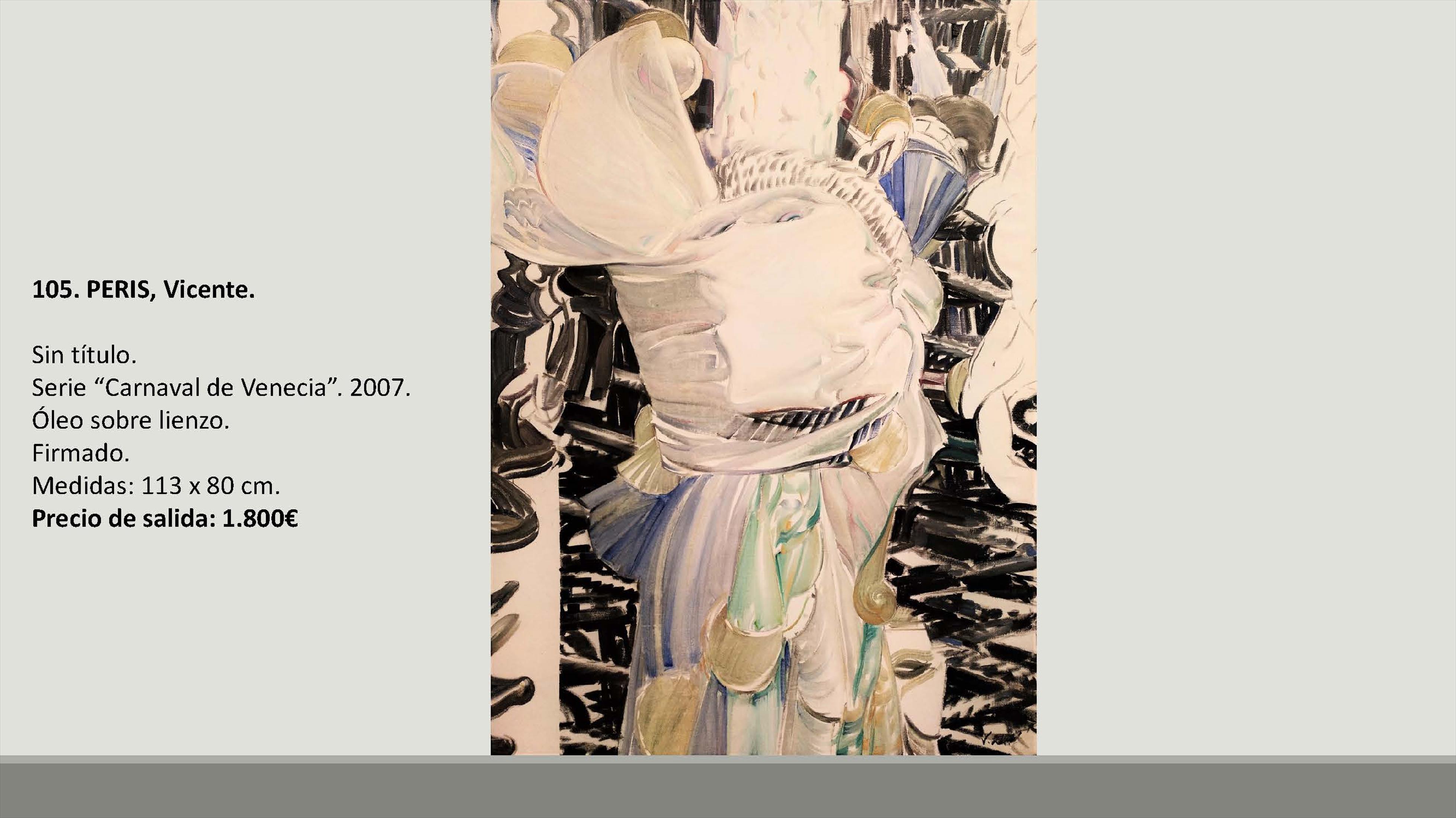 En total se subastarán 109 lotes con precios de salida de entre 90 y 1.800 euros. Y entre las obras hay artistas como Francisco Sebastián, Manolo Valdés, José María Yturralde, Willy Ramos, Vicente Peris, Juan Bautista Porcar Ripollés, Jose Luis Checa, Miquel Navarro, Felipe Santamans, Pedro de Valencia, Horacio Silva, Francisco Lozano, Joaquín Michavila, Genaro Lahuerta, Juan Antonio Toledo, Eusebio Sempere, Cirilo Martínez Novillo, Joan Cardells, Roberto Domingo, Jacinta Gil Roncalés o Carmen Calvo, entre otros artistas.
