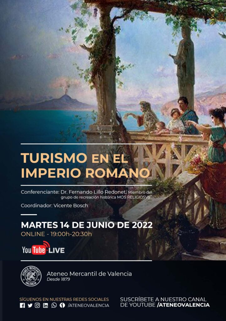 Los romanos fueron los primeros en irse de vacaciones. En estas escapadas aprovechaban para visitar monumentos en Grecia (seguían los pasos de Homero y los grandes filósofos por toda la geografía de la Hélade), Egipto (la grandeza de sus construcciones y las gestas de sus faraones), pero también muchos de ellos tenían mansiones en el sur de Italia para los meses estivales. Fernando Lillo ofrecerá el próximo martes 14 de junio a las 19 horas una conferencia Online, que es un preambulo perfecto para la publicación de su último libro: "Hotel Roma. Vacaciones en el Imperio Romano".