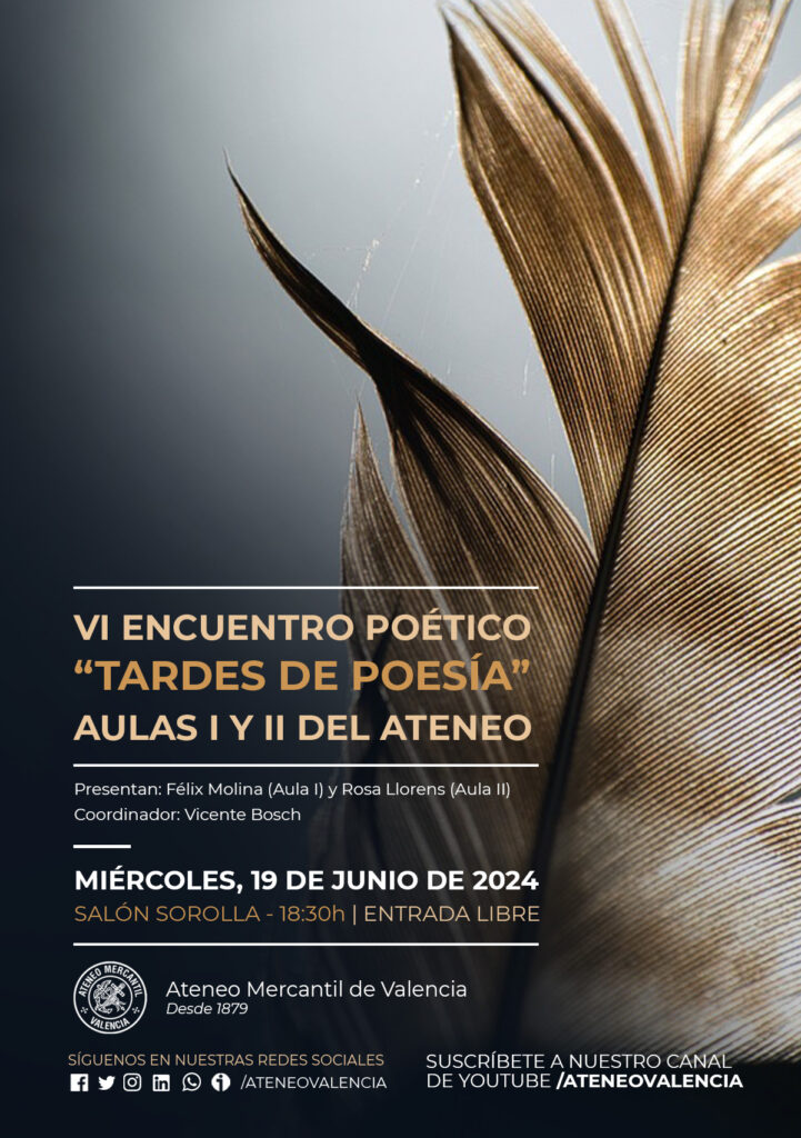 De nuevo la poesía toma carta de naturaleza en el Ateneo Mercantil de Valencia, y aúna voluntades y sensibilidades. Las dos Aulas de Poesía, hermanadas en un evento que suele ir más allá de lo meramente literario, ofrecen un recital conjunto donde poder escuchar distintas voces y registros variados.