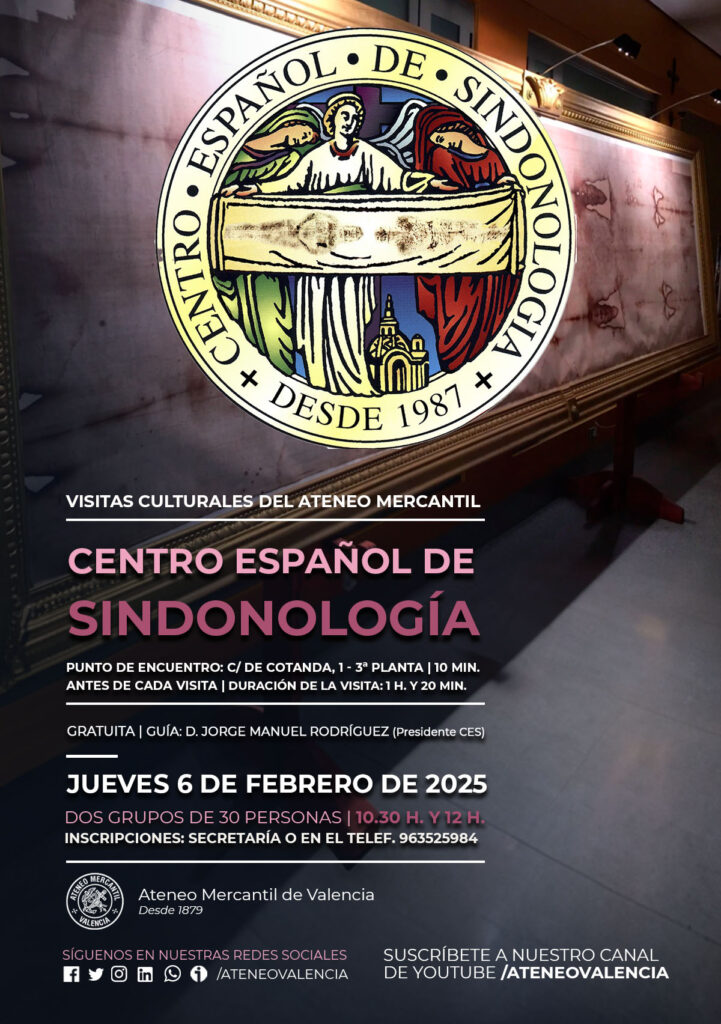 El Ateneo Mercantil de Valencia organiza una visita cultural al Centro Español de Sindonología (CES) el próximo jueves 6 de febrero de 2025. Una oportunidad única para descubrir los misterios de la Sábana Santa y conocer en profundidad los estudios llevados a cabo por este prestigioso centro.