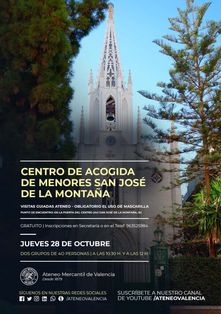 La próxima visita cultural del Ateneo Mercantil será al Centro de acogida de menores San José de la Montaña. La visita está estipulada para dos grupos de 40 personas y será el próximo jueves 28 de octubre a las 10.30 horas el primer grupo y a las 12 horas el segundo. La visita será completamente gratuita y se podrá acceder tanto el centro-hogar como la iglesia. El punto de encuentro será en la puerta del centro, Av/ San José de la Montaña, 15.