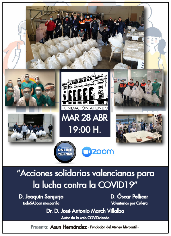 El próximo martes 28 de abril a las 19 horas tenemos una nueva cita con otra webinar organizada por la Fundación del Ateneo Mercantil CV para tratar de ofertar cultura en estos momentos en los que la crisis de la COVID-19 golpea duramente a España y la Comunitat Valenciana. La webinar llega con el título: "Acciones solidarias valencianas para la lucha contra la COVID19".