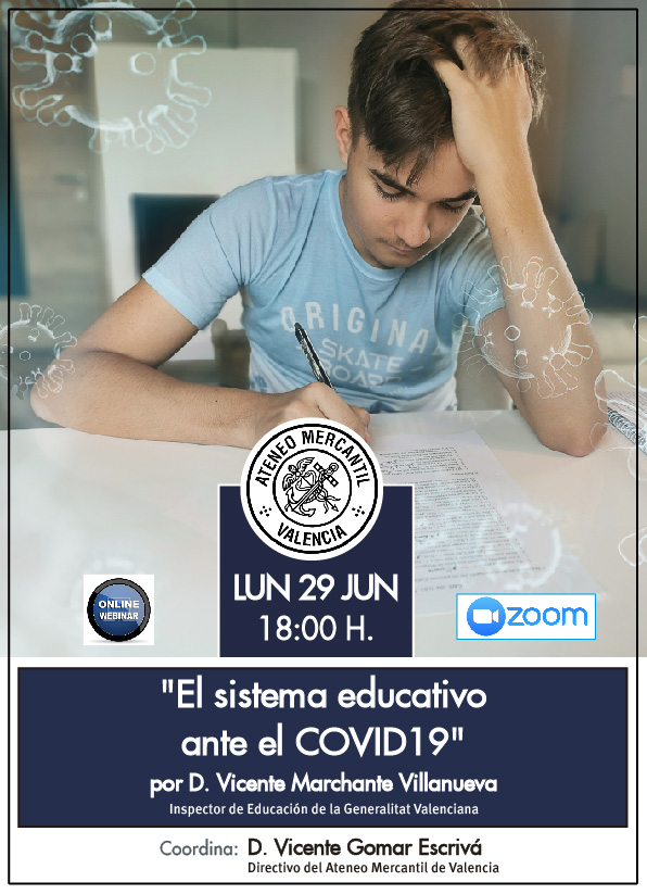 El próximo lunes 29 de junio el Ateneo Mercantil de Valencia ha organizado una nueva webinar en la que se hablará sobre educación y es que se ha convertido en uno de los principales temas que preocupan a los padres en estos momentos de ioncertidumbre tras la crisis del COVID19. Así a las 18 horas tendremos la webinar "El sistema educativo ante el COVID19" y que nos traerá el inspector del Servicio Central de la Conselleria de Educación de la GVA, D. Vicente Marchante Villanueva.