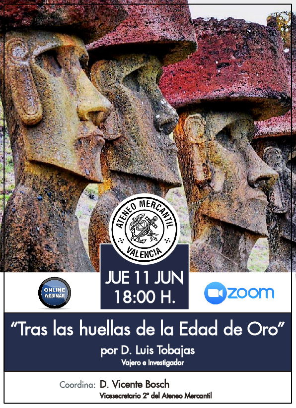El próximo jueves 11 de junio, a las 18 horas, regresa a las webinar del Ateneo Mercantil de Valencia el viajero e investigador, D. Luís Tobajas, para traernos una nueva conferencia hasta nuestras casas sobre sus grandes viajes. La ponencia llega bajo el título "Tras las huellas de la Edad de Oro" y está englobada en el Ciclo Grandes Enigmas de la Humanidad. La Atlántida, el Diluvio, la Edad de Oro, lo han llamado de muchas formas. Hace 10.000 años un cataclismo transformó a la humanidad para siempre . Viajamos por todo el mundo para descubrir el mayor enigma de la historia.