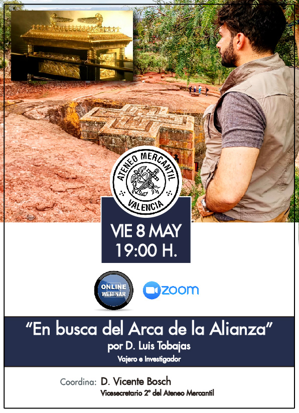El próximo viernes 8 de mayo a las 19.00 horas llega al Ateneo Mercantil de Valencia una nueva webinar con una de las conferencias que mayor tirón tuvo en 2019 y que pertenece al Ciclo Grandes Enigamas de la Humanidad. El viajero e investigador Luis Tobajas nos trae 'En busca del Arca de la Alianza' para que podamos descubir las historias, sus secretos y posible su recorrido a lo largo de la historia.