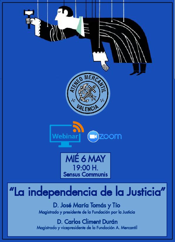 El próximo miércoles 6 de mayo a las 19 horas se llevará a cabo una nueva webinar del Foro Sensus Communis que llega con el título: "La independencia de la Justicia" y la llevarán a cabo dos especialistas en la materia como son los magistrados D. José María Tomás y Tío, que además, es presidente de la Fundación por la Justicia, y D. Carlos Climent Durán, que también es vicepresidente de la Fundación del Ateneo Mercantil de Valencia.
