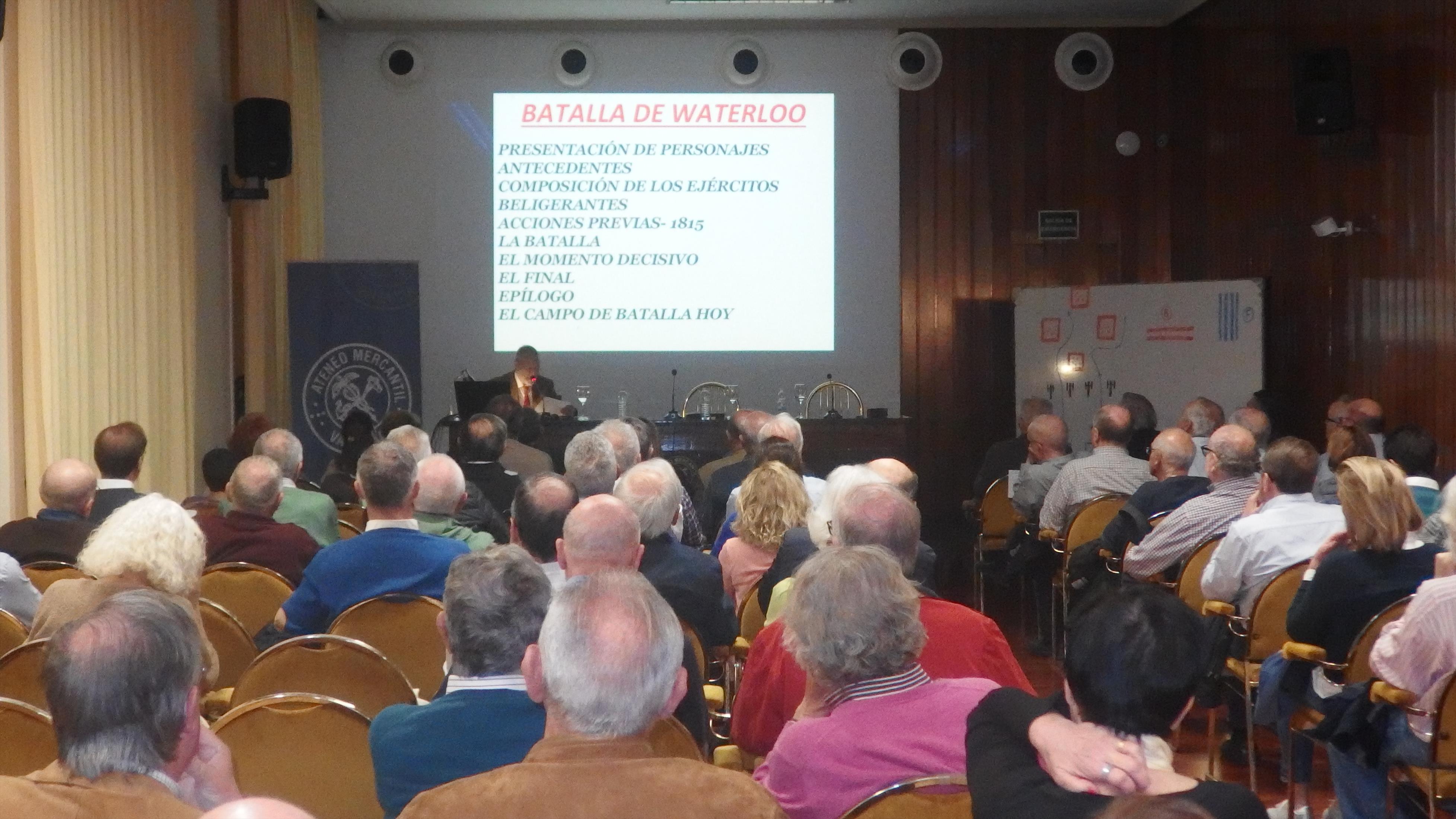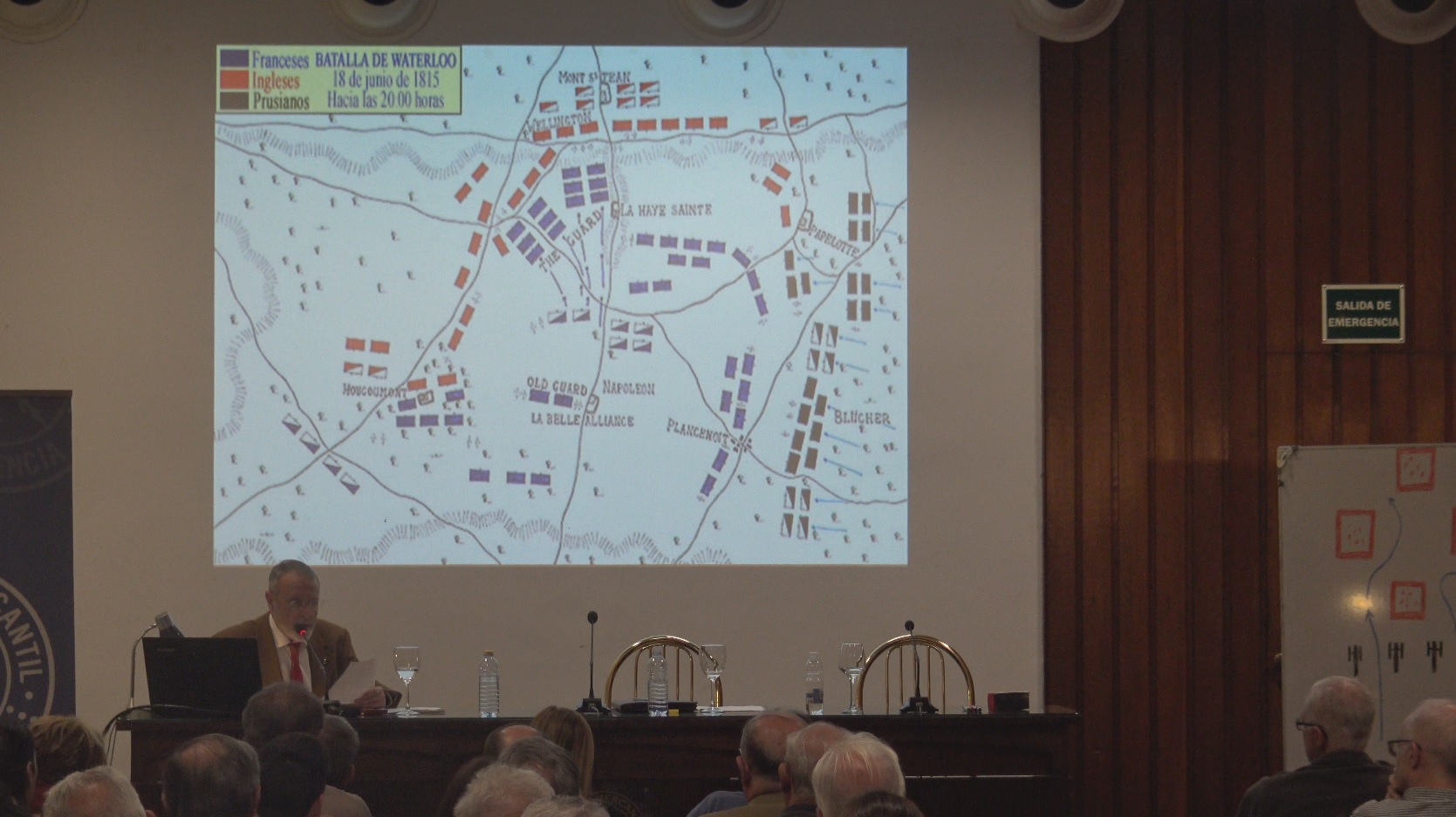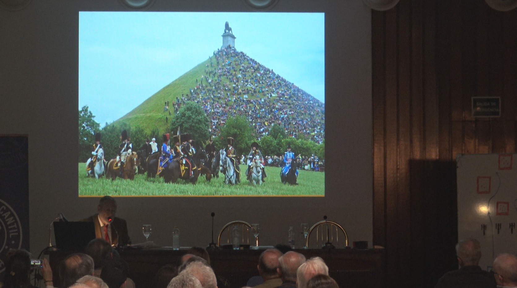 Juan Sanz realizó una brillante exposición sobre Waterloo en la que explicó que esta población, por obra de los anglosajones,  dio nombre a la célebre batalla cuando, en realidad, la misma tuvo lugar tres kilómetros al sur, en el Monte de San Juan.
