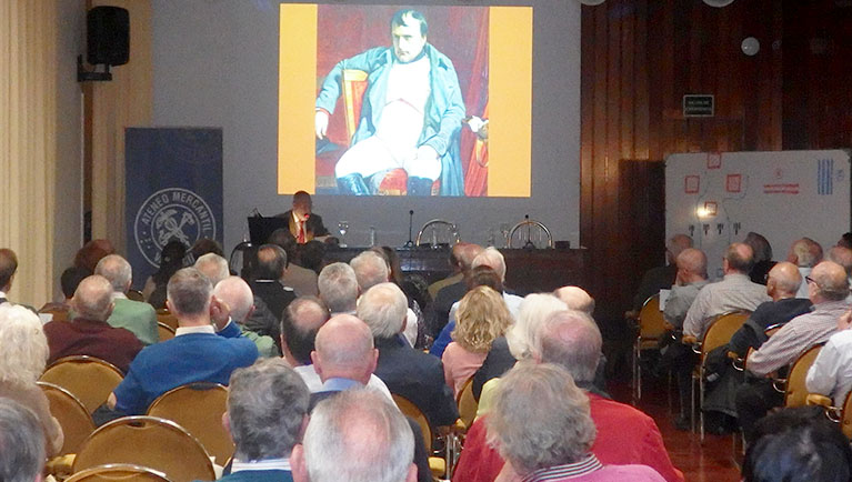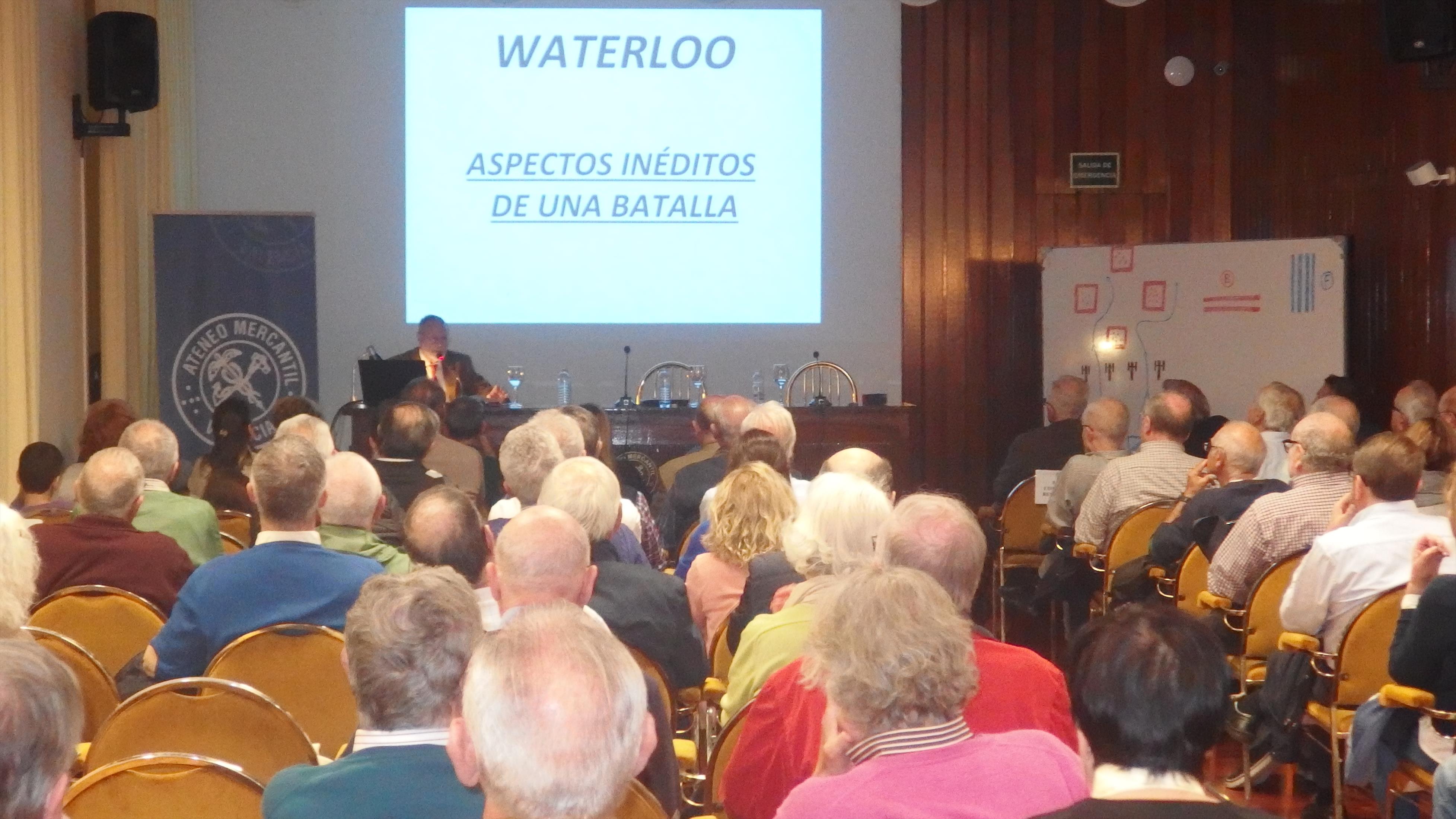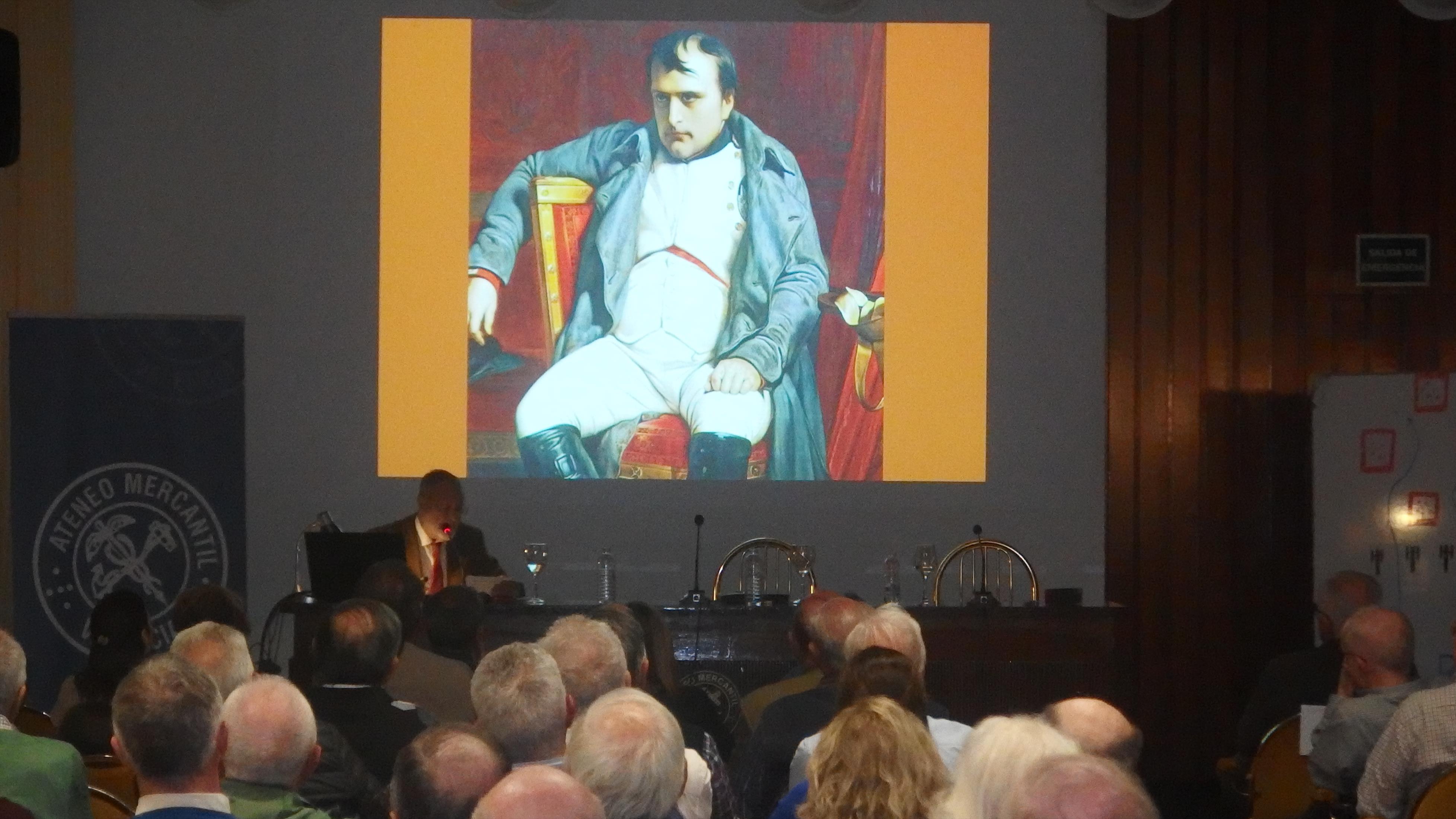 Juan Sanz realizó una brillante exposición sobre Waterloo en la que explicó que esta población, por obra de los anglosajones,  dio nombre a la célebre batalla cuando, en realidad, la misma tuvo lugar tres kilómetros al sur, en el Monte de San Juan.