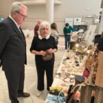 La presidenta del Ateneo Mercantil de Valencia, Carmen de Rosa Torner, recién llegada a Valencia no dudó en compartir la tarde del domingo con los artesanos y puso el broche a un Mercado de la DANA que ha sido un absoluto éxito de participación y de público. Asimismo, el vicepresidente 2º del Ateneo Mercantil de Valencia, Ignacio Carrau, tampoco se perdió detalle y estuvo apoyando en todo momento a cada uno de los artesanos que se dieron cita en el mercadillo. Se preocupó por su situación laboral y personal y también quiso saber más de cada uno de los oficios representados en los diferentes puestos.