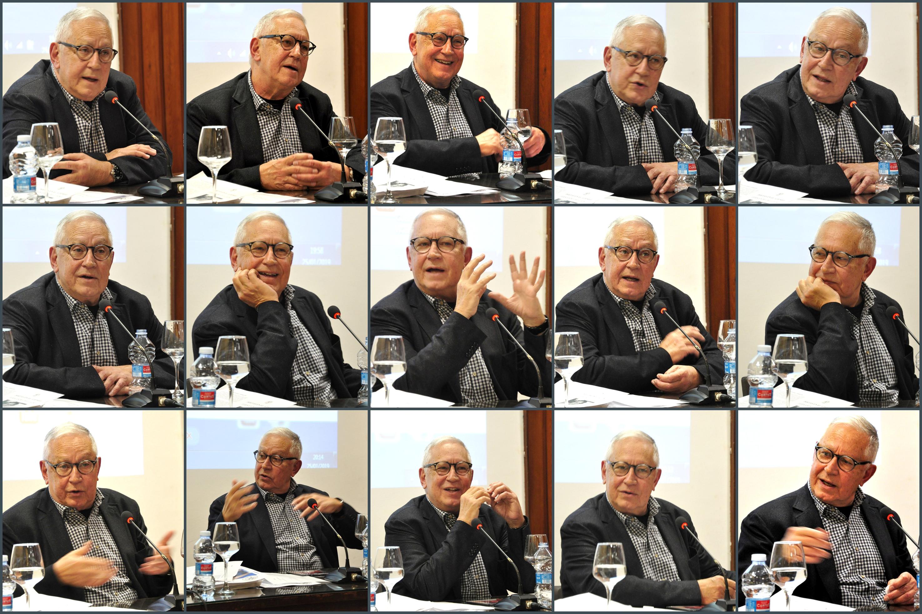 Tras definirlo como una persona muy cordial, transgresora, tímida y, sobre todo, generosa y extremadamente amable, le llegó el turno al recorrido por la vida del poeta a través de la proyección de algunas de sus fotografías correspondientes a su actividad política y literaria. Fotos con Pedro Cerolo, Felipe González, el Rey emérito Juan Carlos, Francisco Brines, José Hierro, Carlos Bousoño, Ángel González, Luis Antonio de Villena… que el poeta fue comentando con su característica amenidad.