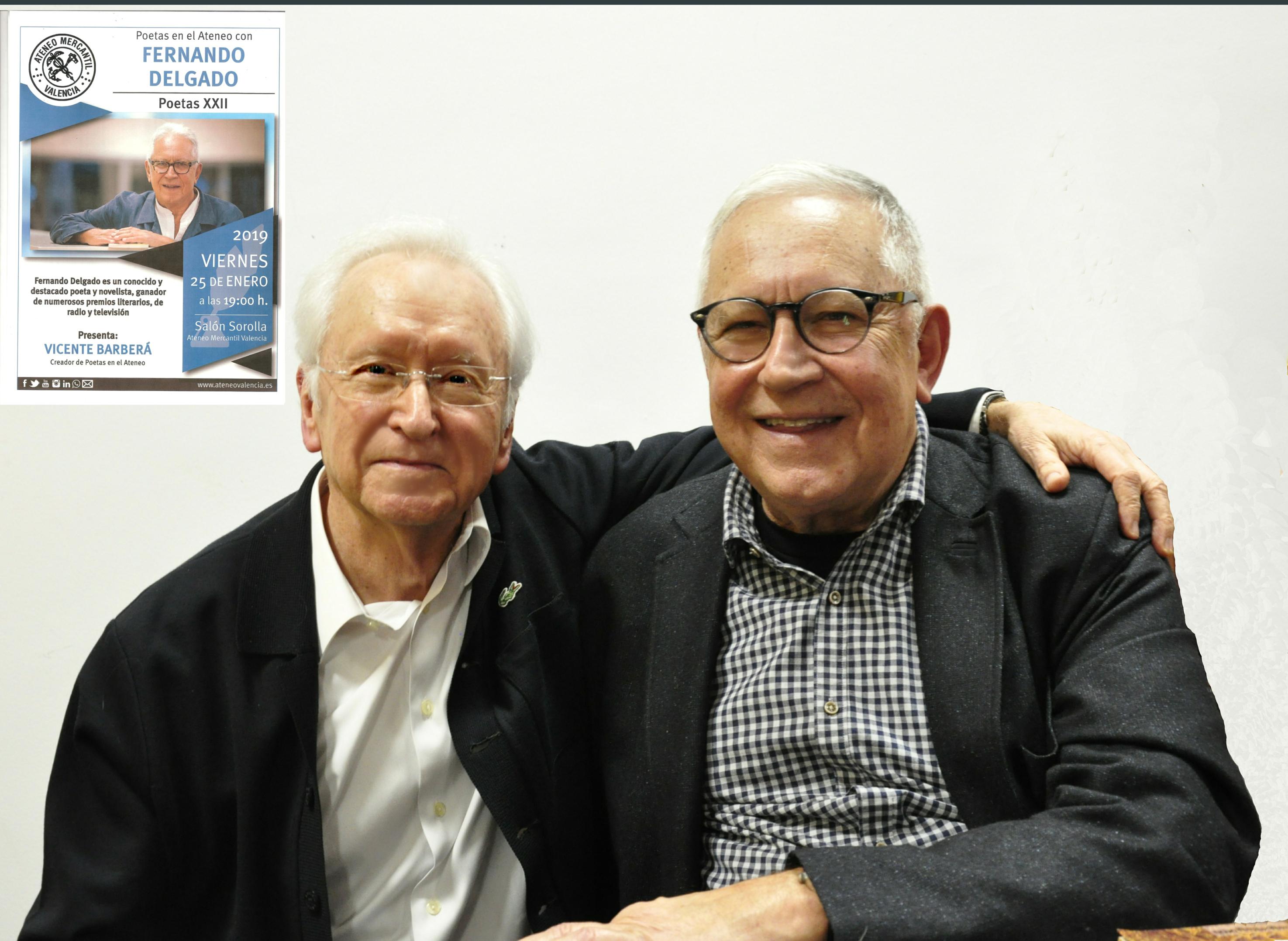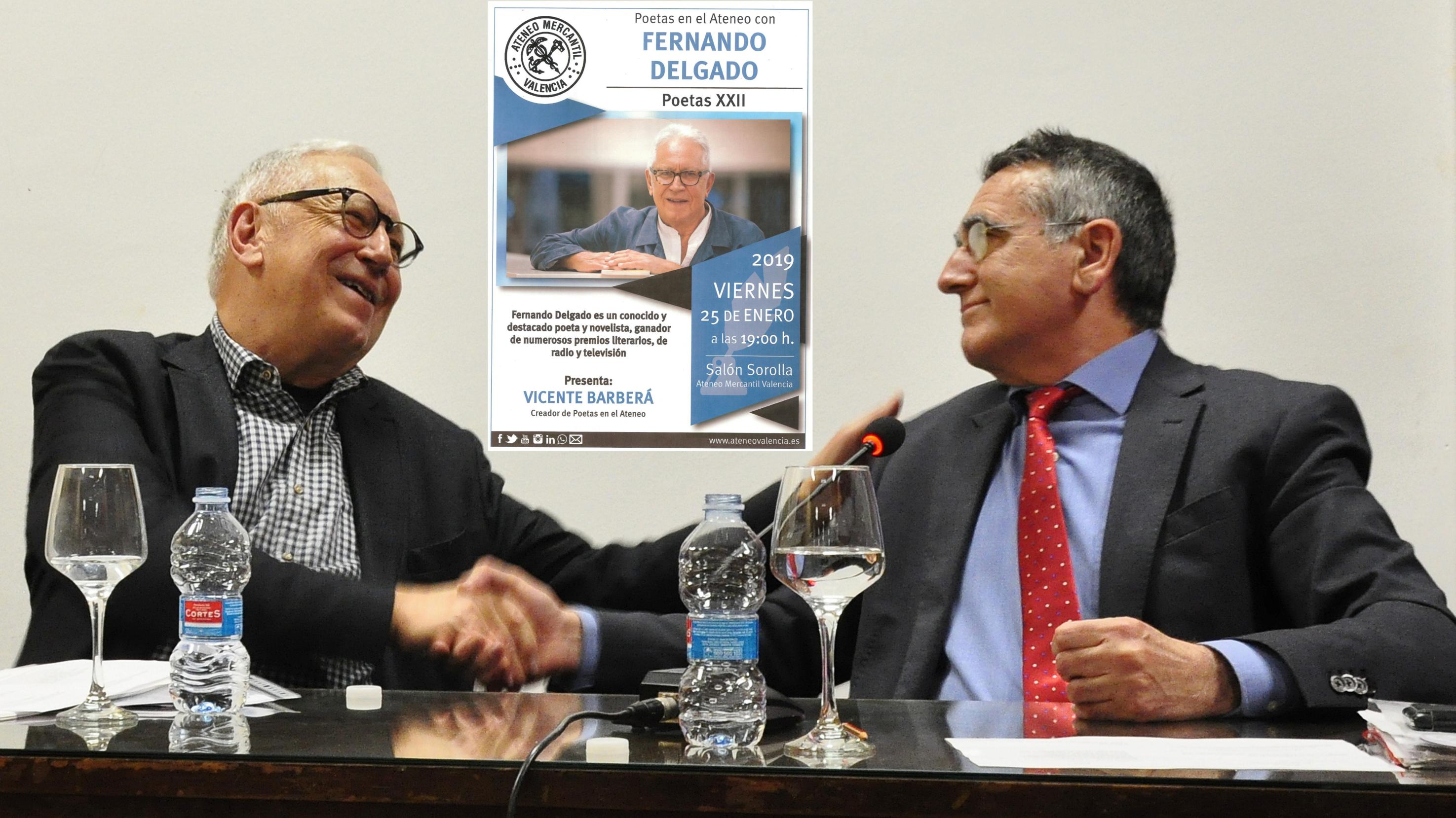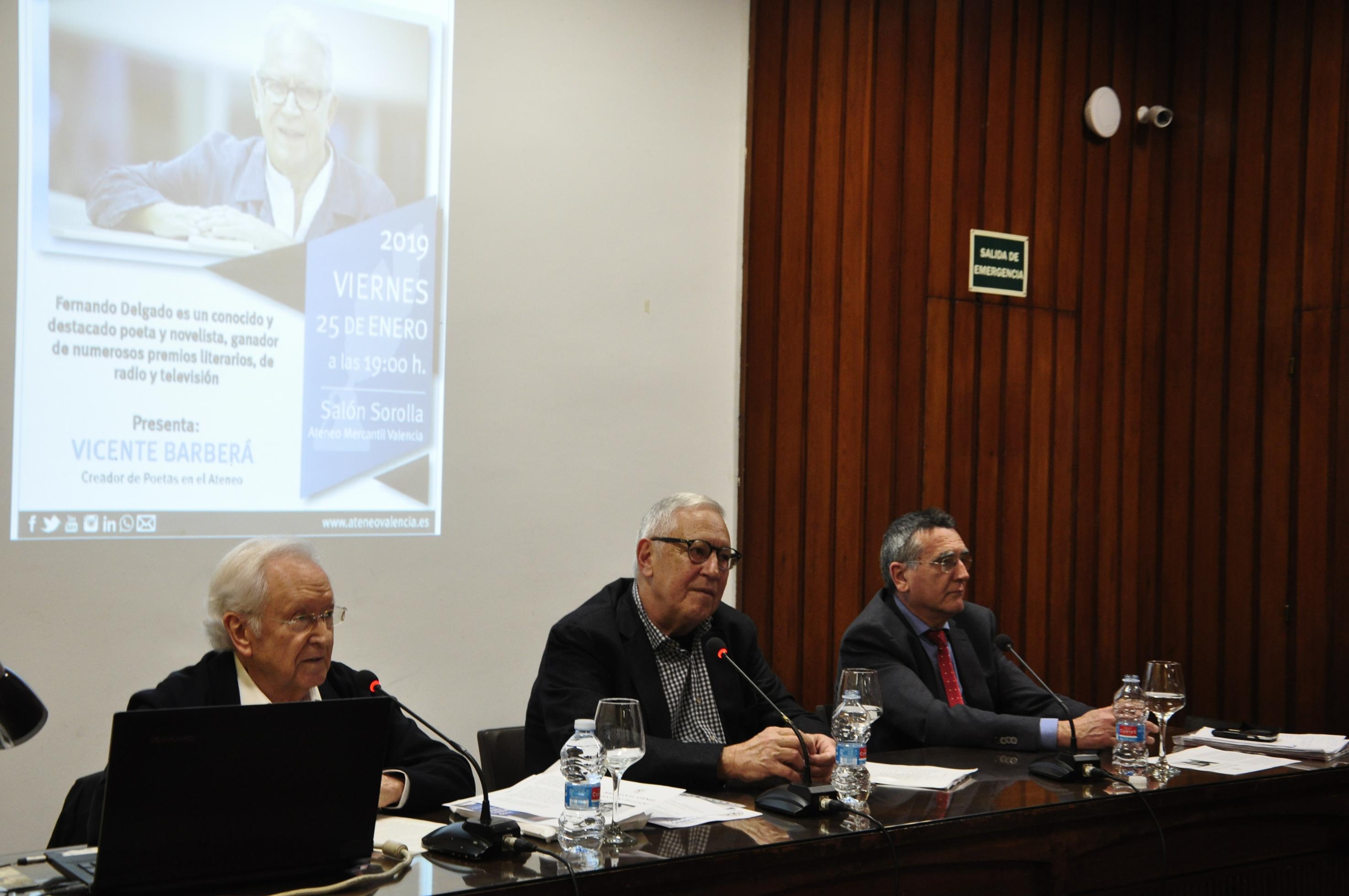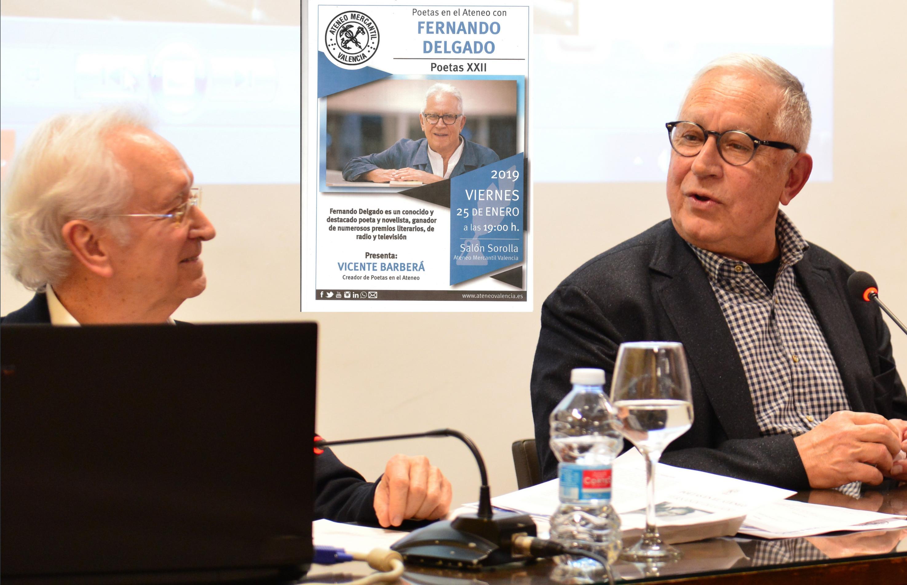 La XXII edición de “Poetas en el Ateneo” estuvo dedicada al poeta Fernando Delgado que, en esta ocasión, contó con las palabras de bienvenida de Vicente Bosch, con las de su amigo y también poeta, Ricardo Bellveser, y con la dirección de Vicente Barberá.